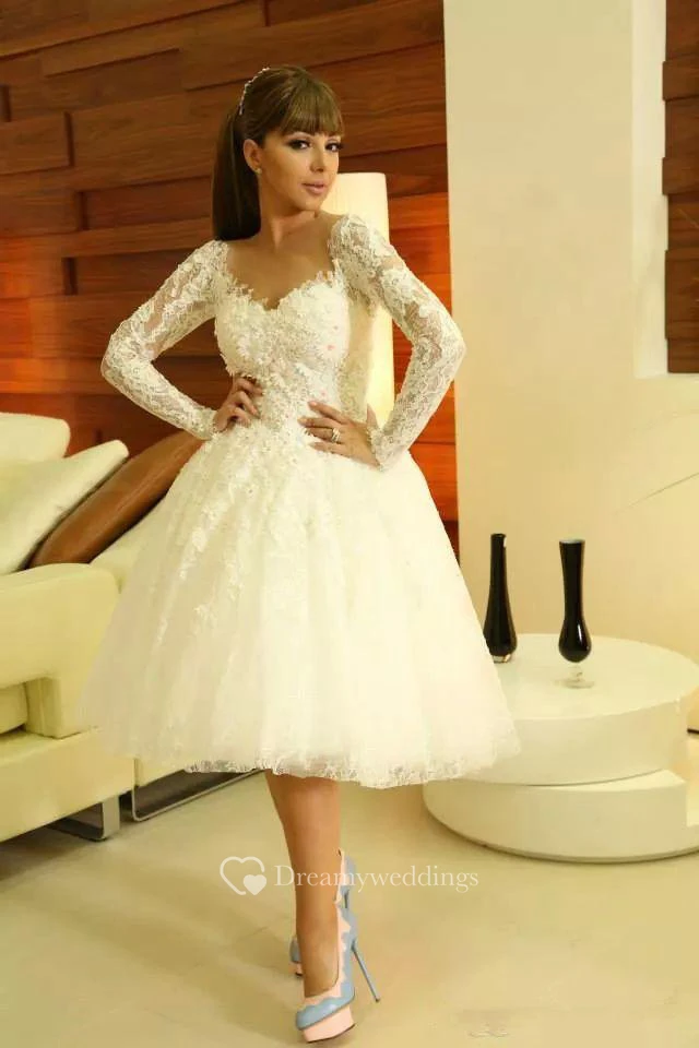 Modern Sweetheart Long Sleeve Short Wedding Dress With Lace Appliques