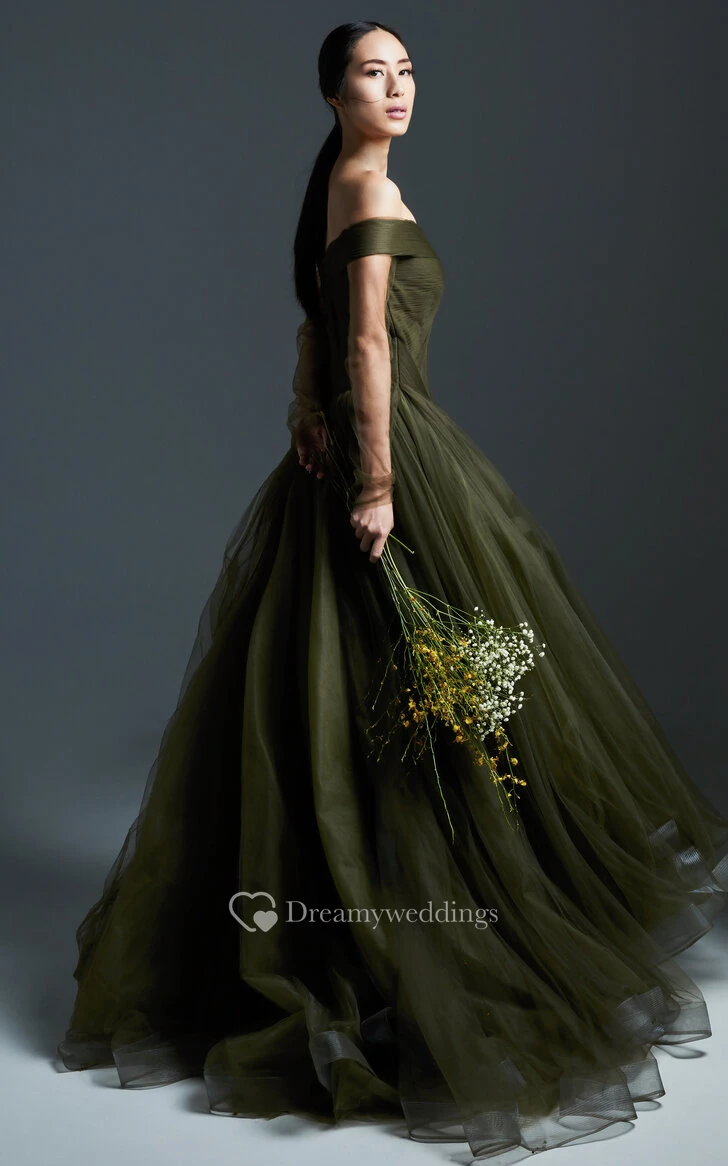 Modern Tulle A Line Floor-length Long Sleeve Formal Dress with Ruching