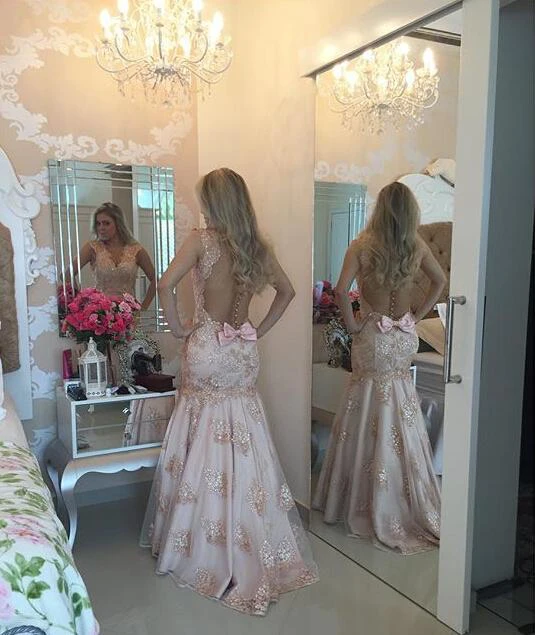 Modern V-neck Mermaid Evening Dress Sequins Sweep Train Bowknot