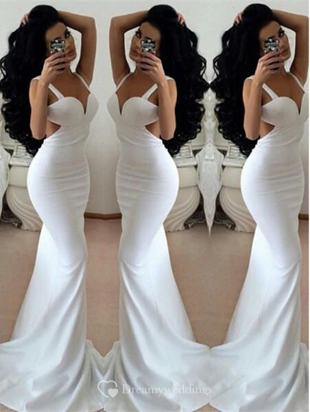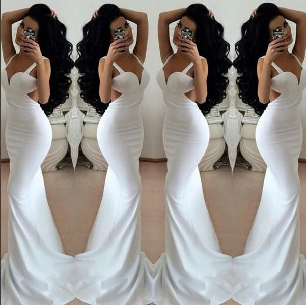 Modern White Mermaid Prom Dresses Backless Sleeveless