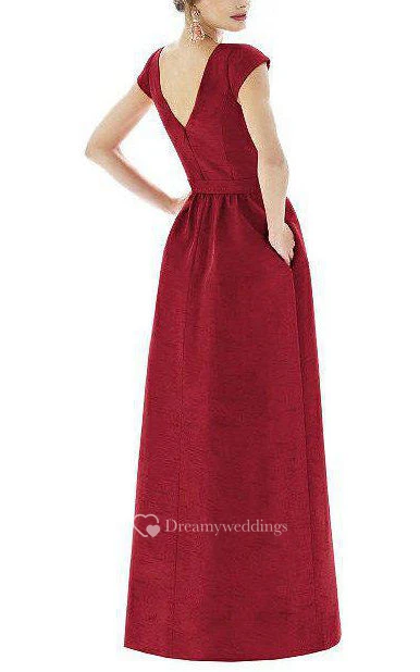 Modest Satin Short Sleeve Long Bridesmaid Dress with Bow