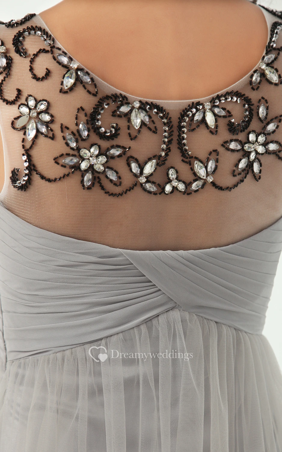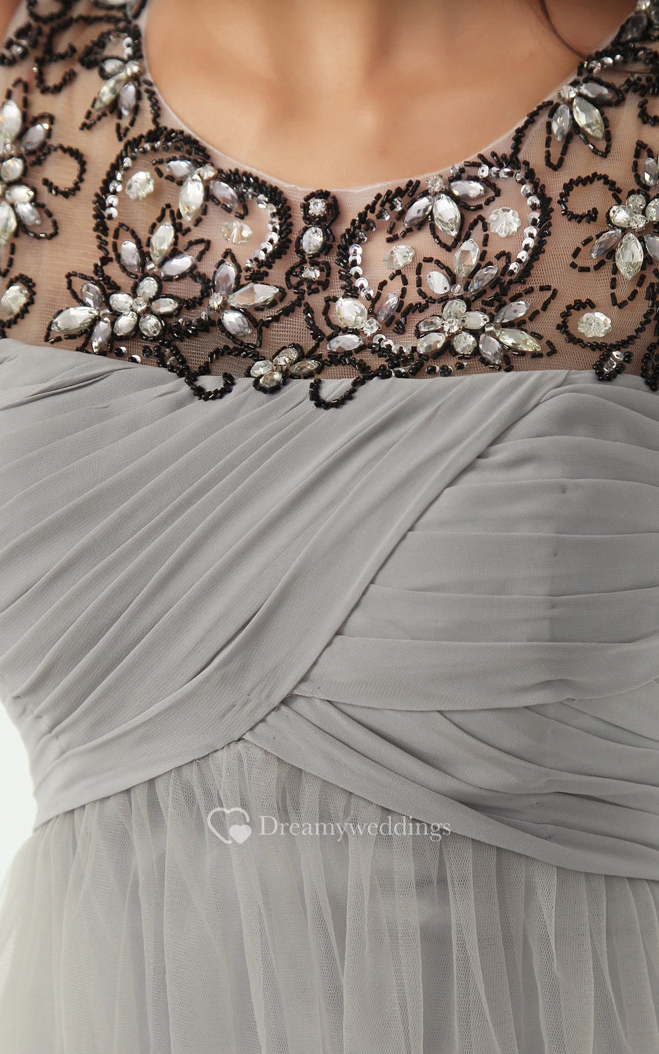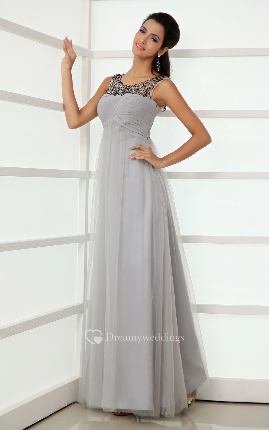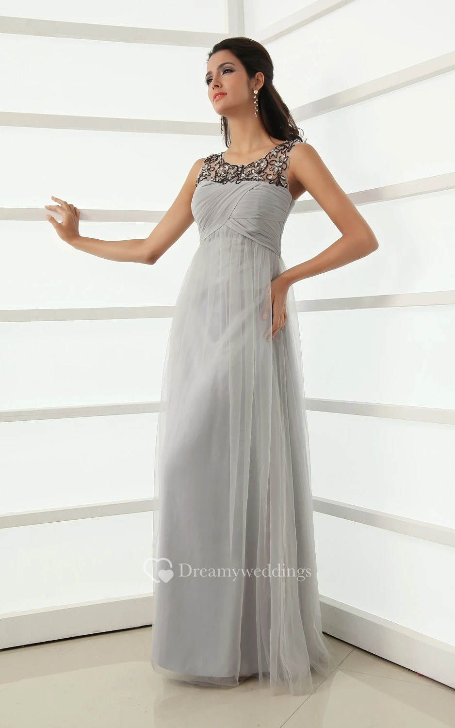 Modest Scoop Neckline Empire Tulle A-Line Gown Beading Top