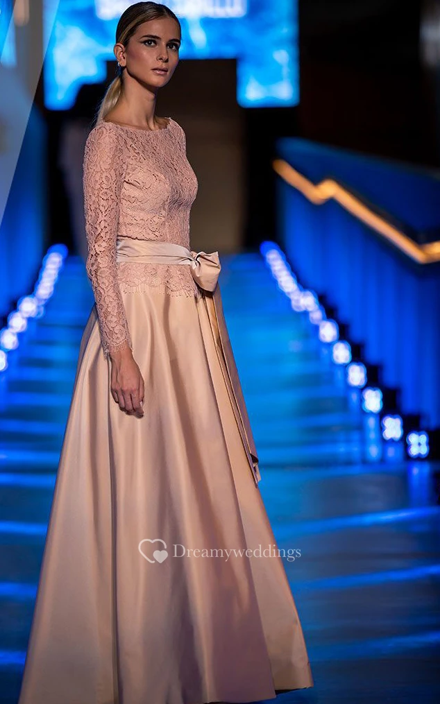 Modest Sleeveless Floor-length A Line Satin Prom Dress with Ribbon