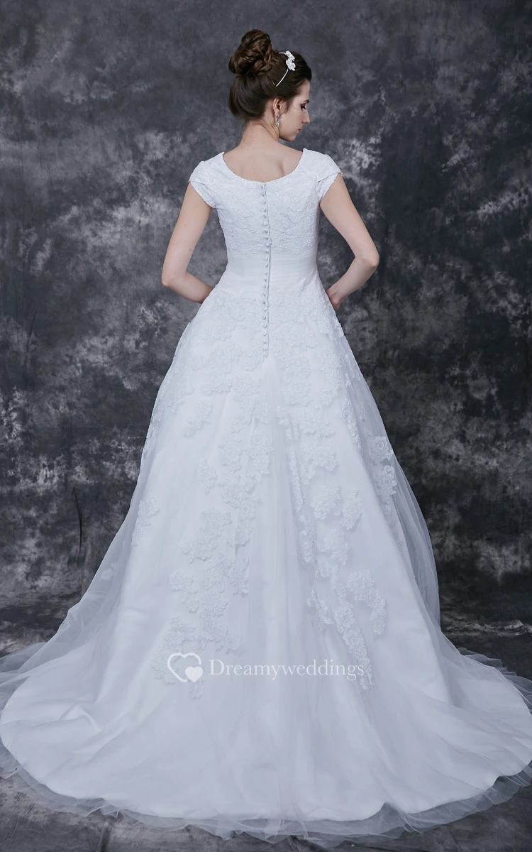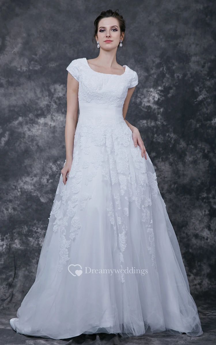 Modesty Square Lace Wedding Gown With Tulle Skirt