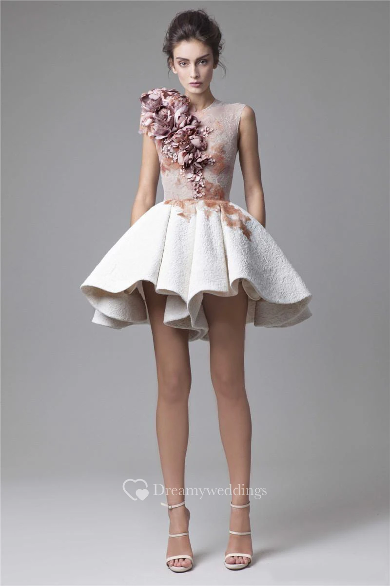 Mordern A-Line Sleeveless Jewel Short Delicate Flowers Prom Dress