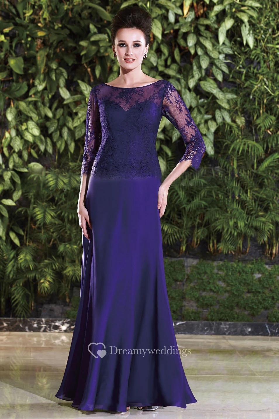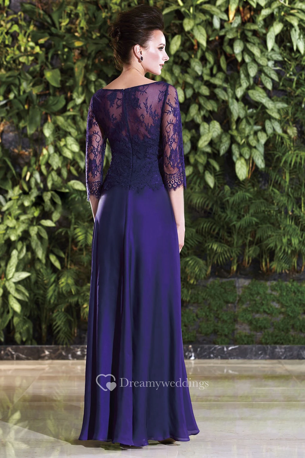 Mermaid Trumpet Floor-Length Scoop 3 4 Length Sleeve Chiffon Lace Appliques Zipper Dress