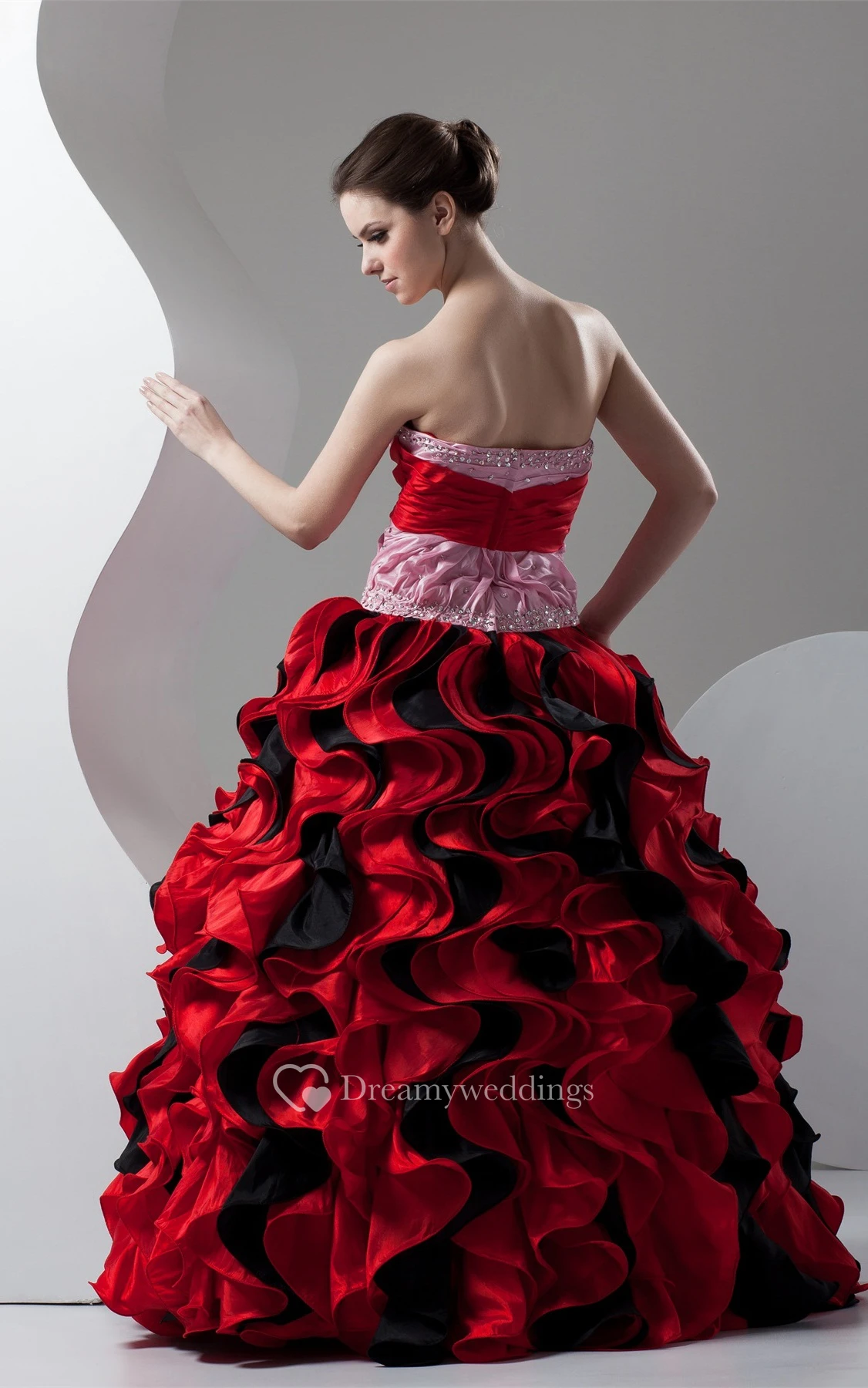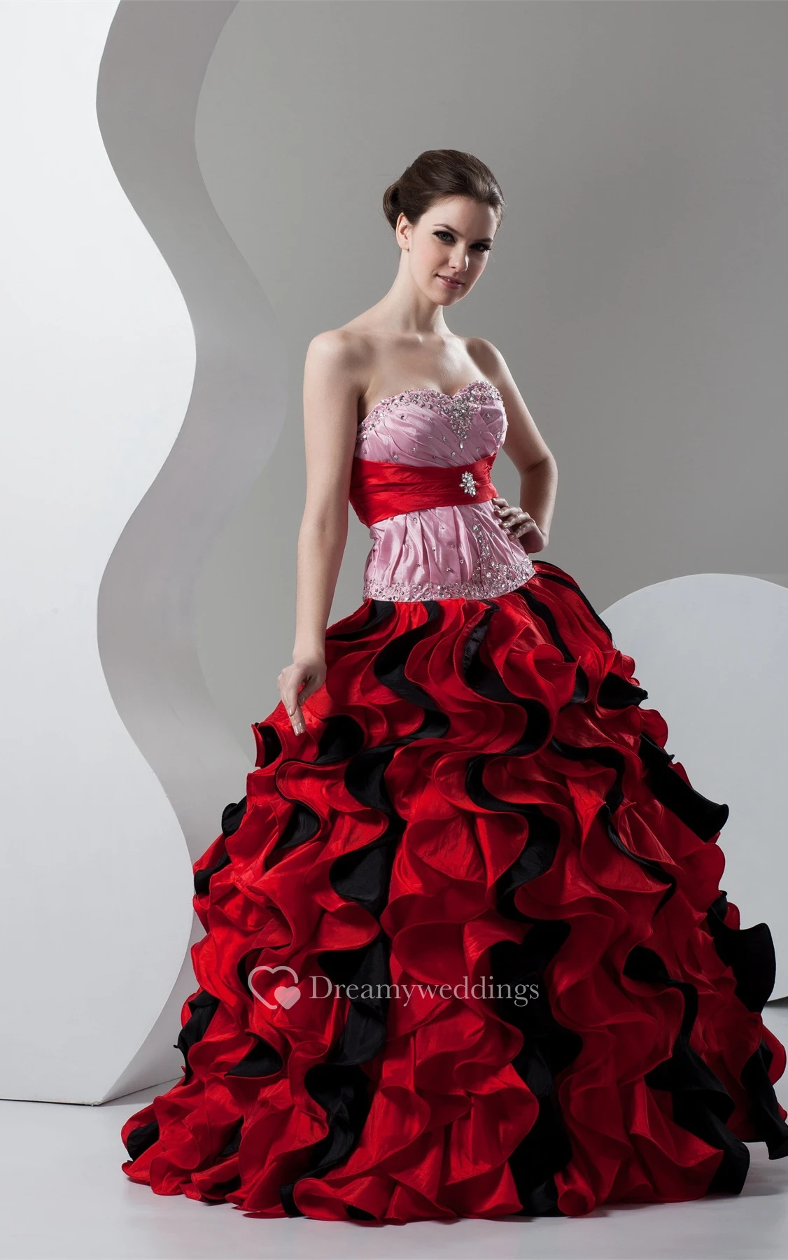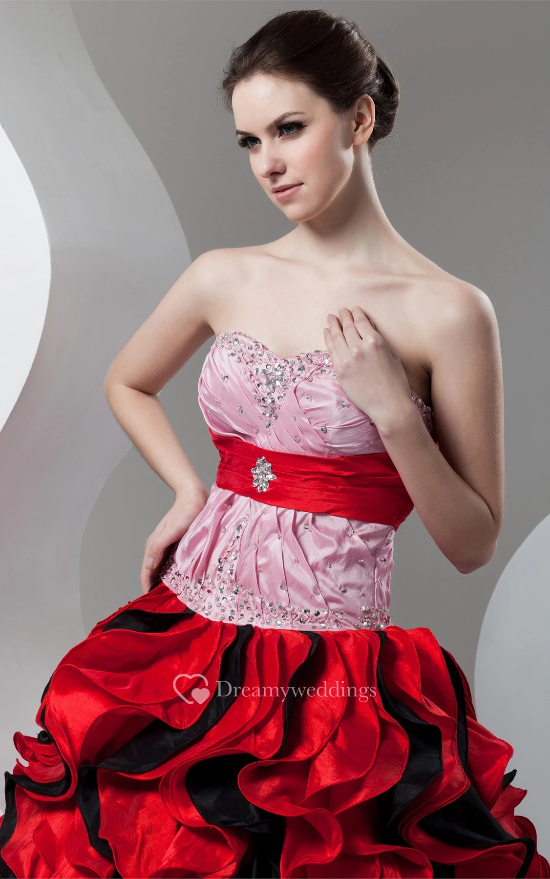 Mute-Color Ruffled Stress and Ball-Gown With Broach