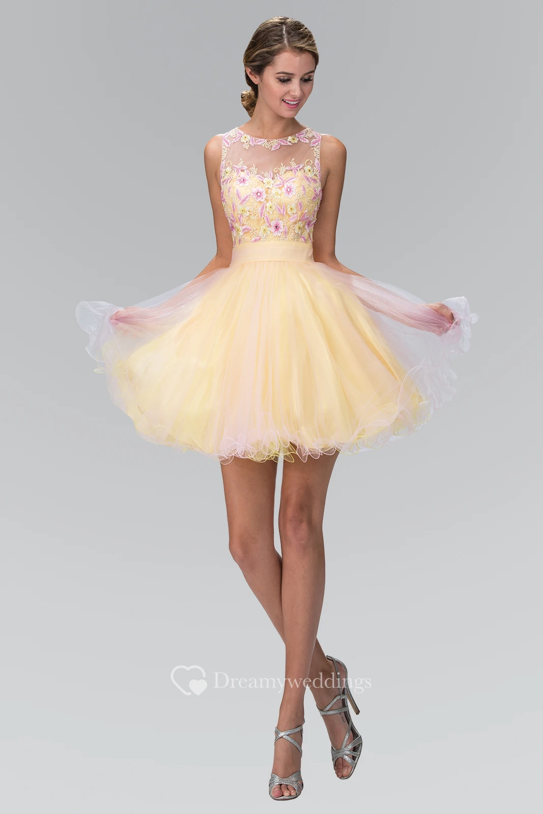Muti-Color A-Line Mini Jewel-Neck Sleeveless Tulle Dress With Appliques And Appliques