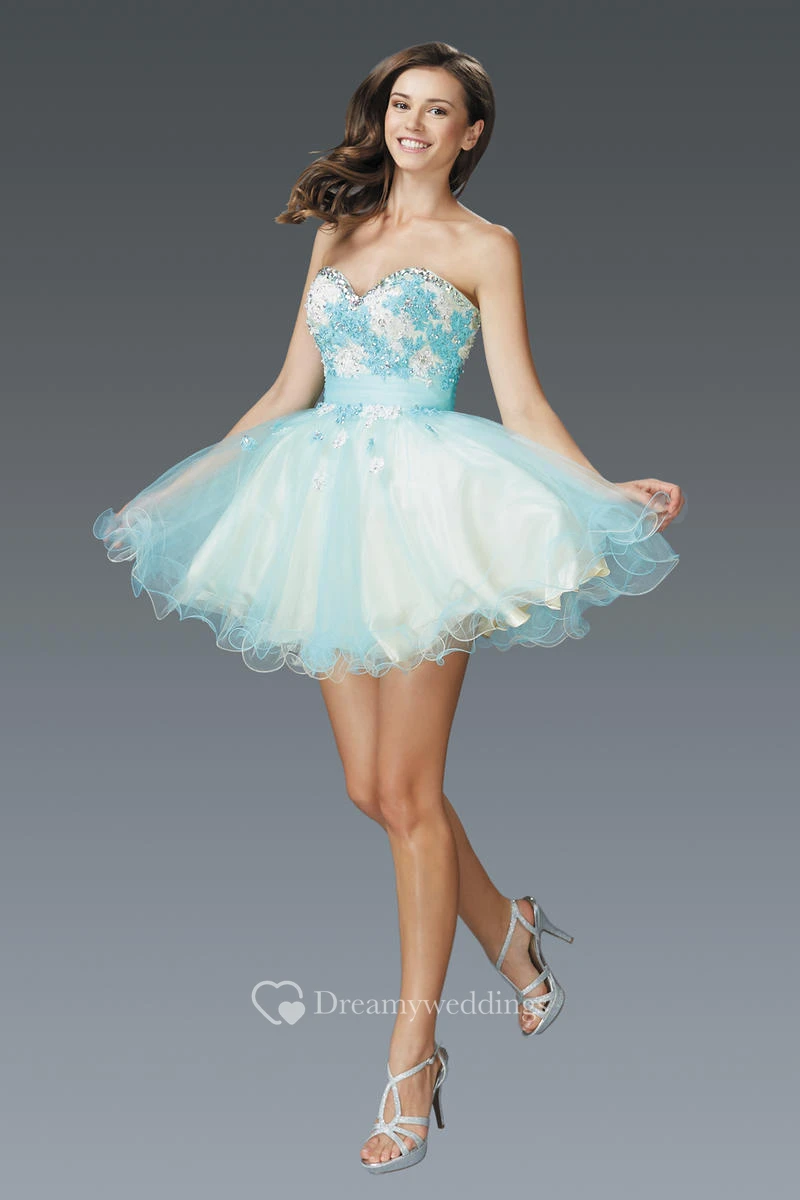 Muti-Color A-Line Mini Sweetheart Sleeveless Tulle Satin Dress With Appliques And Ruffles