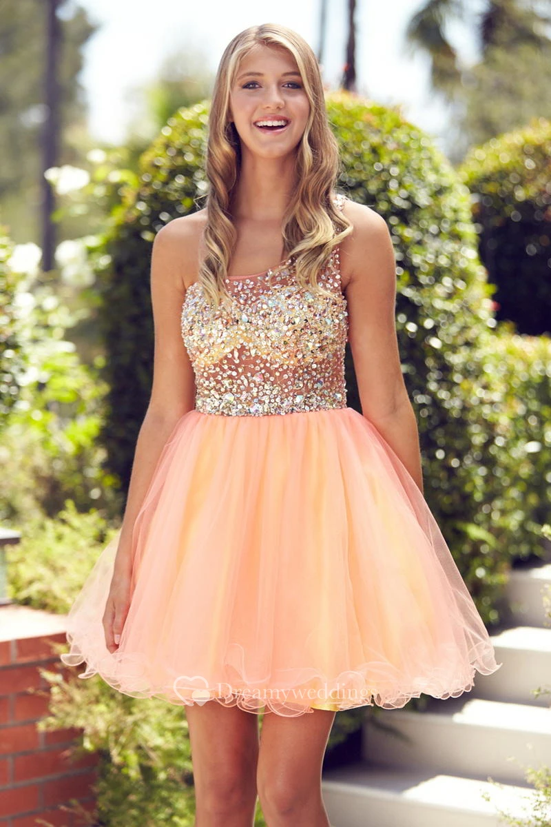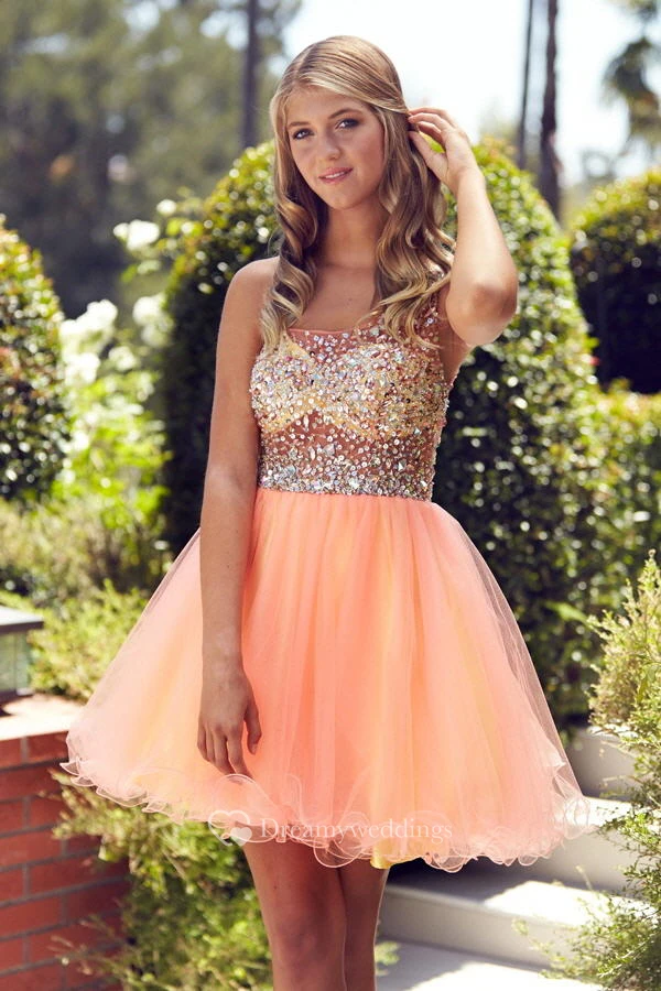 Muti-Color A-Line Short Straps Sleeveless Tulle Dress With Beading