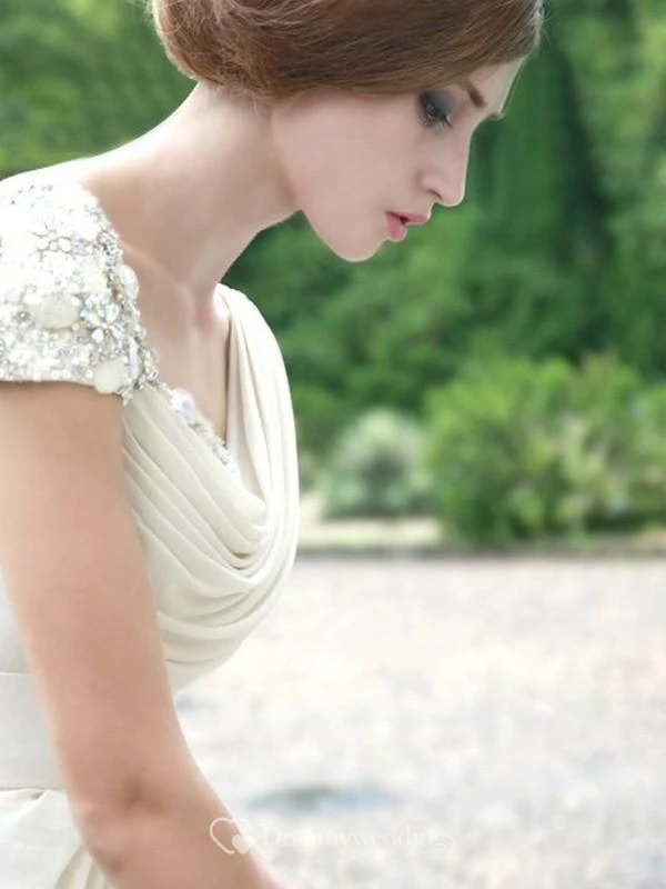 New A-line Floor-length Scoop Ruffles Sleeveless Chiffon Dress