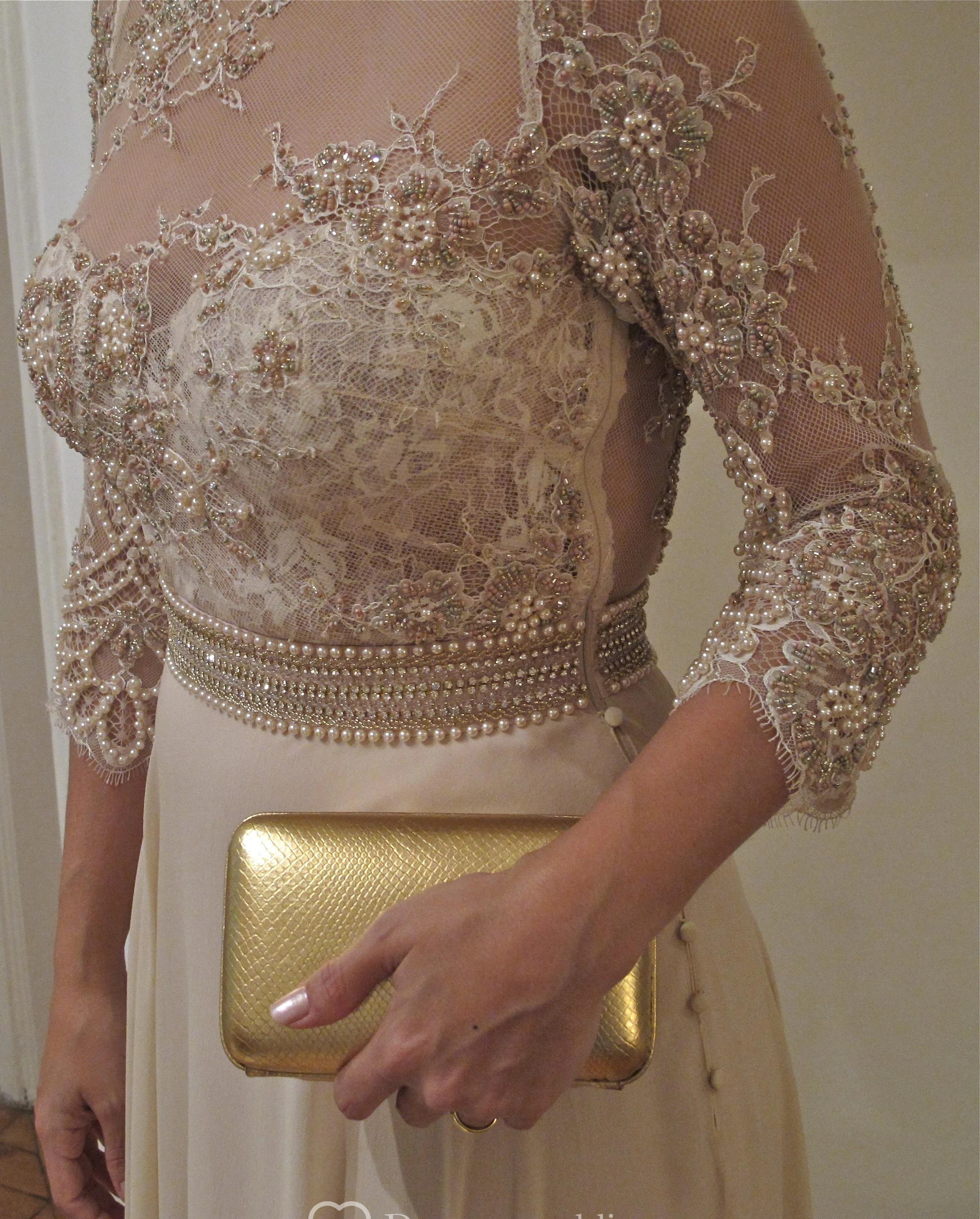 New Lace Prom Gowns 3-4 Sleeves Chiffon Party Dresses With Pearls