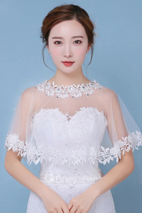 New Spring and Summer Lace Cape Rhinestone White Shawl