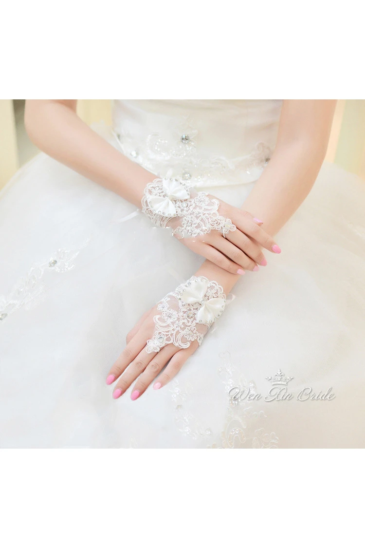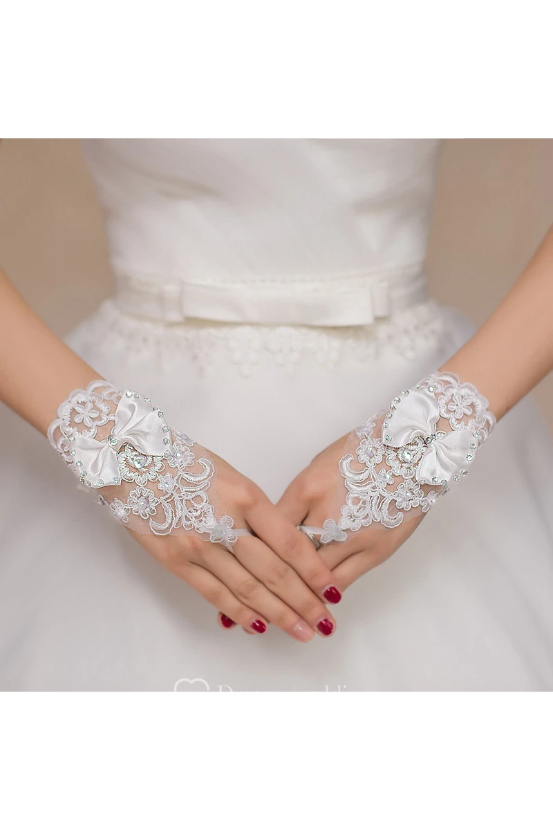 New White Bow Lace Diamond Hook Short Paragraph Gloves