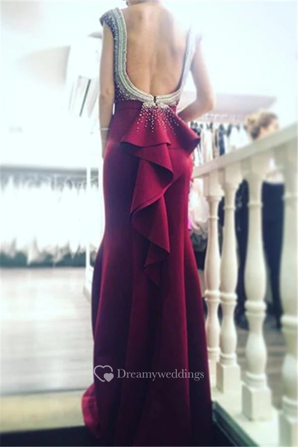 Newest Beadings Ruffles Prom Dress Bodycon Jewel Cap Sleeve