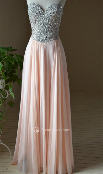 Newest Crystals Chiffon A-line Evening Dress Sweetheart Floor-length