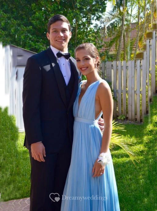 Newest Deep V-neck A-line Prom Dress Sleeveless Floor-length