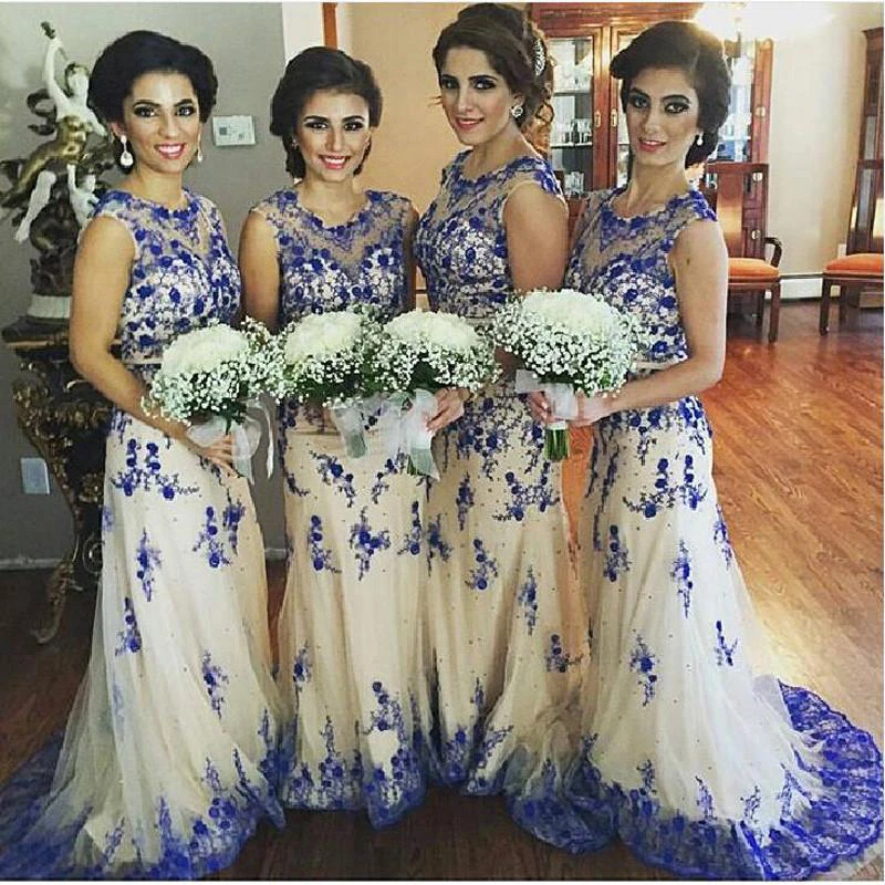 Newest Lace Appliques Illusion Bridesmaid Dress Sweep Train