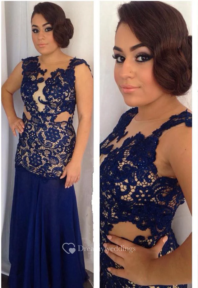 Newest Lace Appliques Mermaid Evening Dress Sweep Train