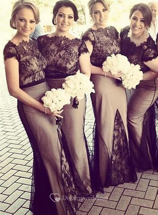 Newest Lace Mermaid Bridesmaid Dress Cap Sleeve Floor-length