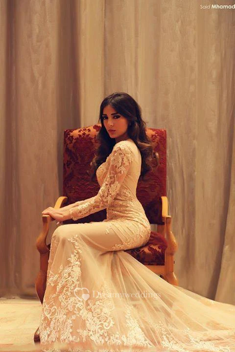 Newest Long Sleeve Lace Appliques Evening Dress Mermaid Sweep Train