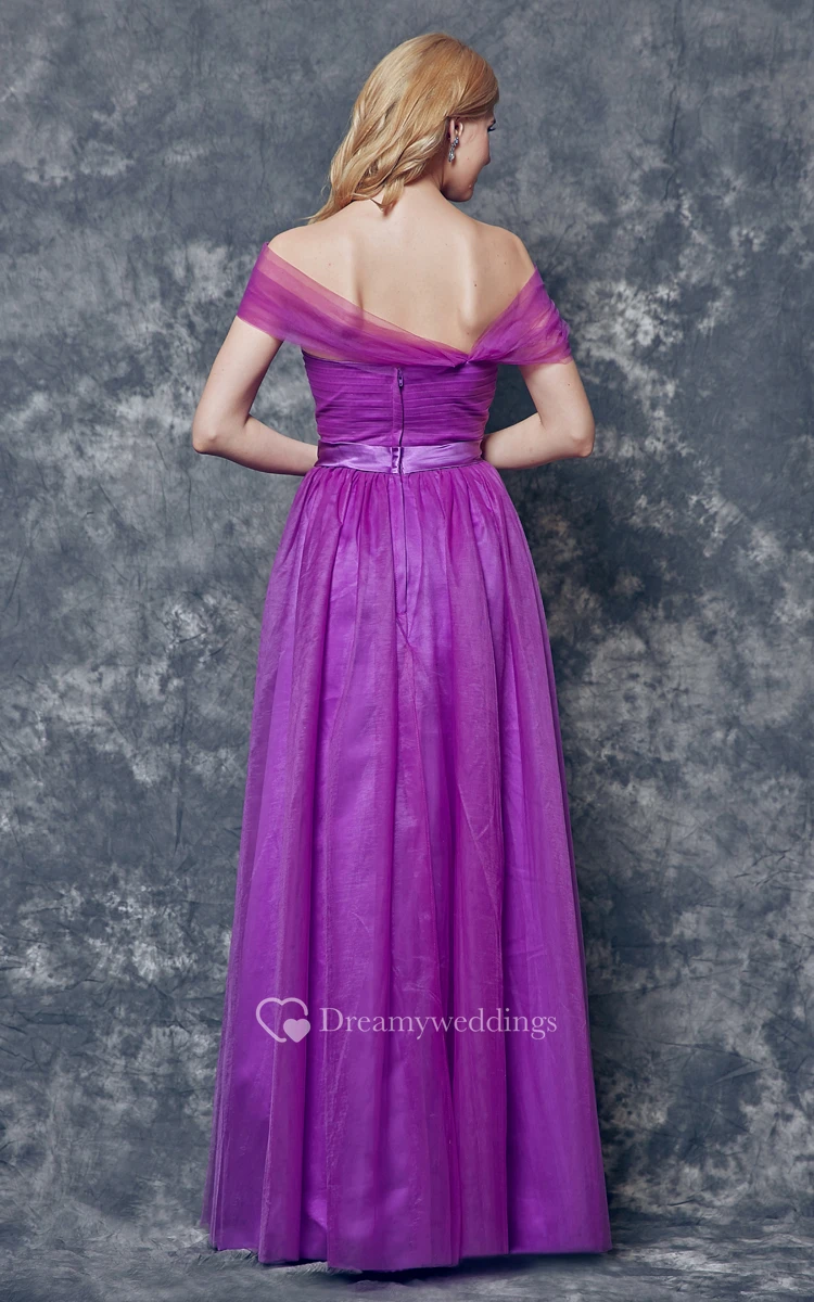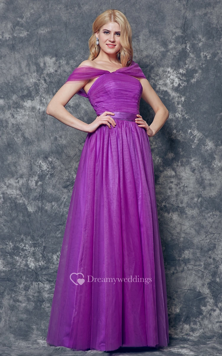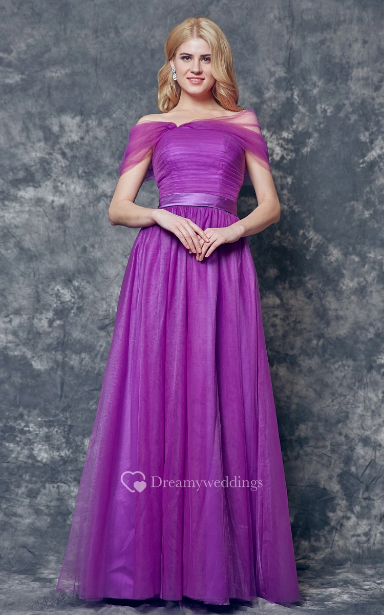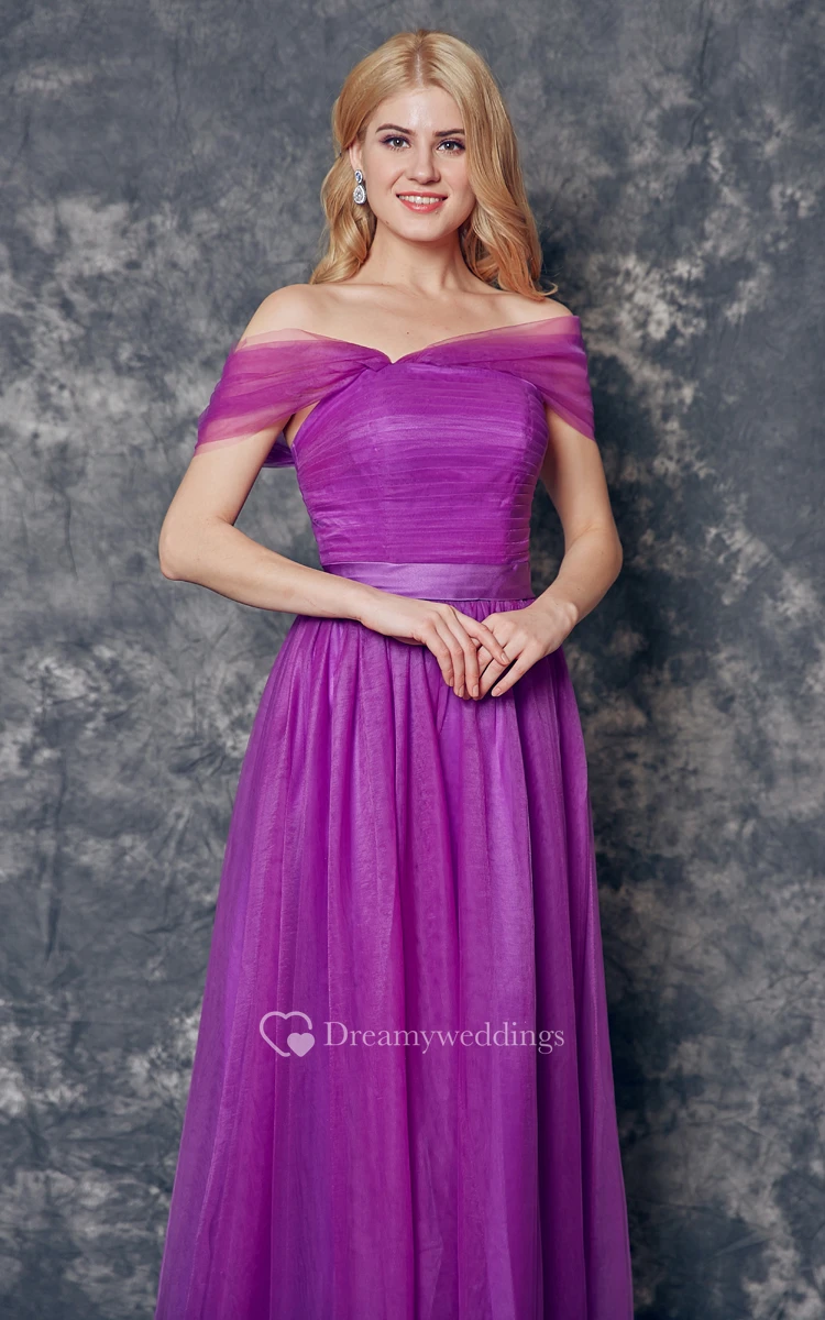 Noble Off-the-shoulder Long A-line Tulle Dress With Pleats