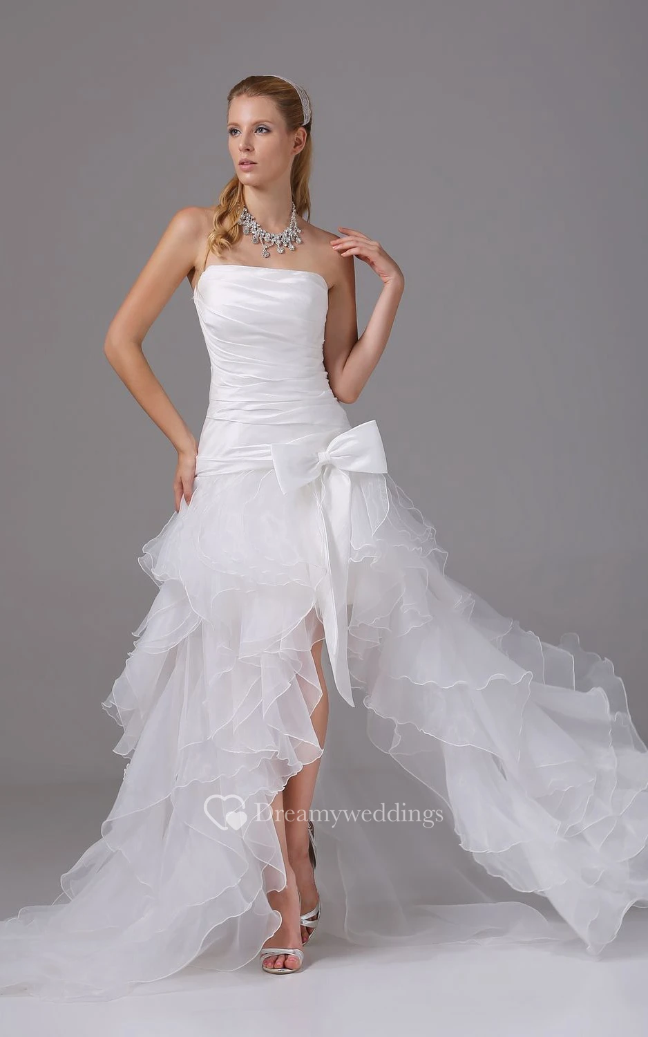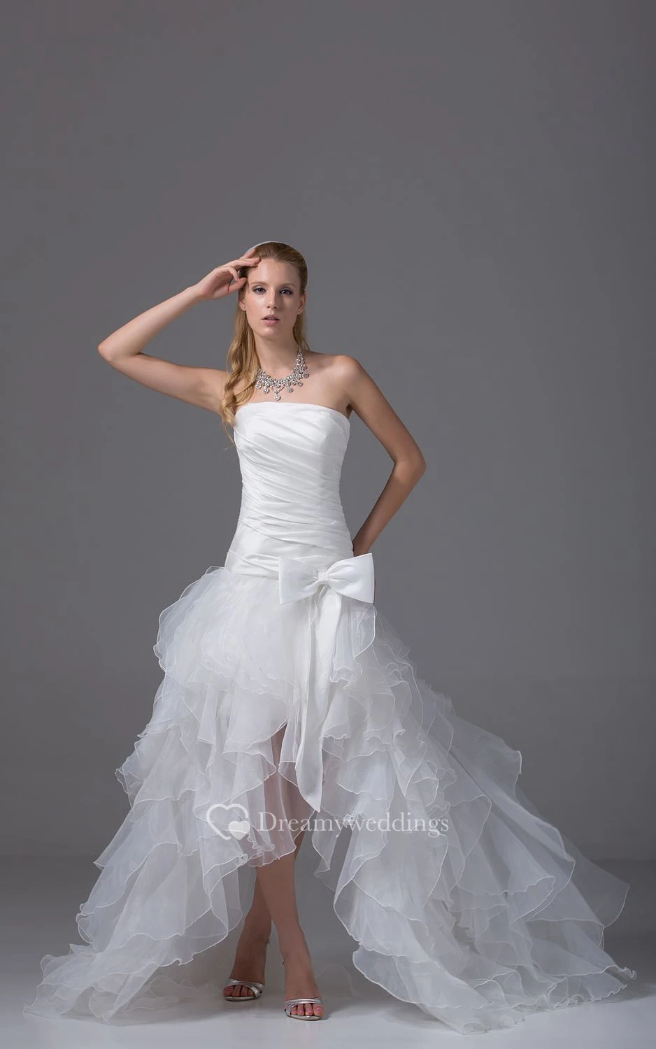 Noble Strapless High-Low Organza Dress With Ruching and Corset Back