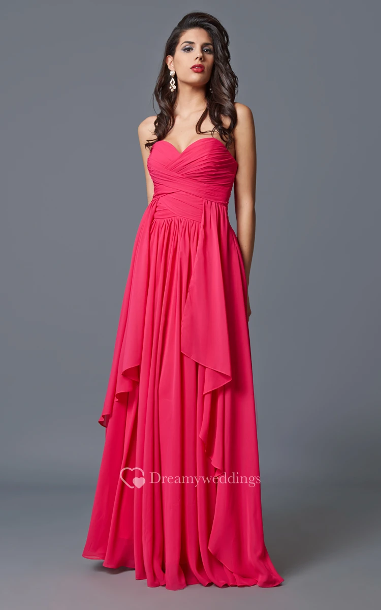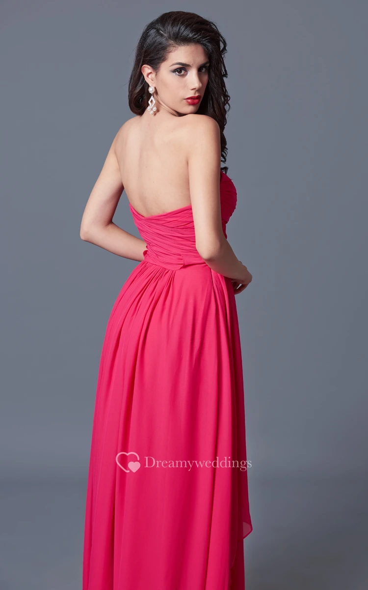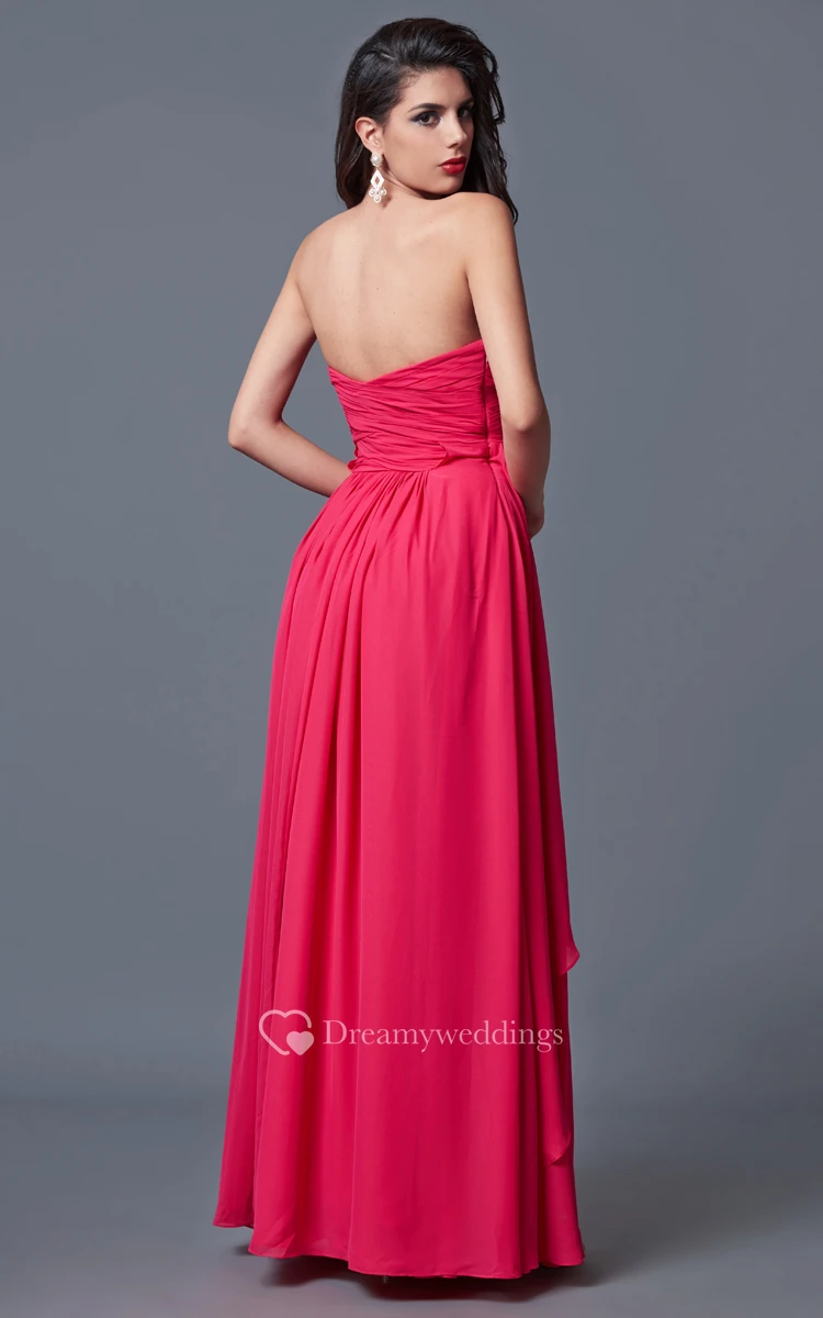 Noble Strapless Long A-line Tiered Chiffon Dress With Asymmetrically Ruching