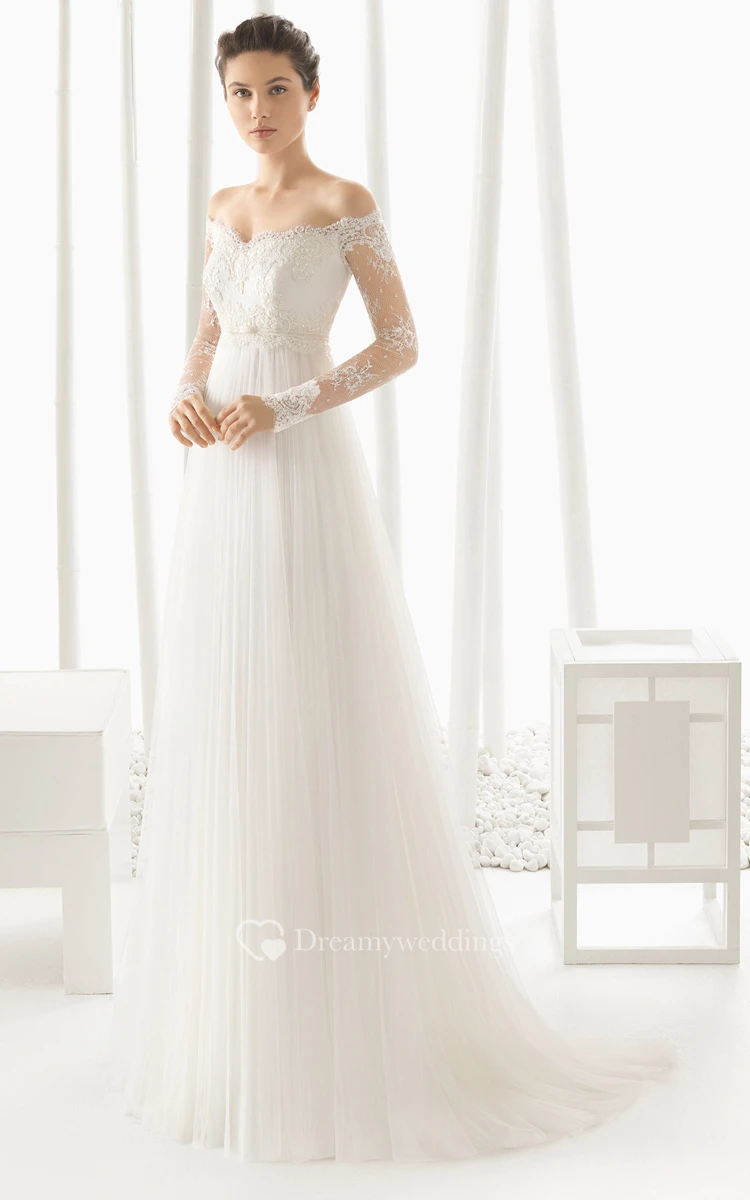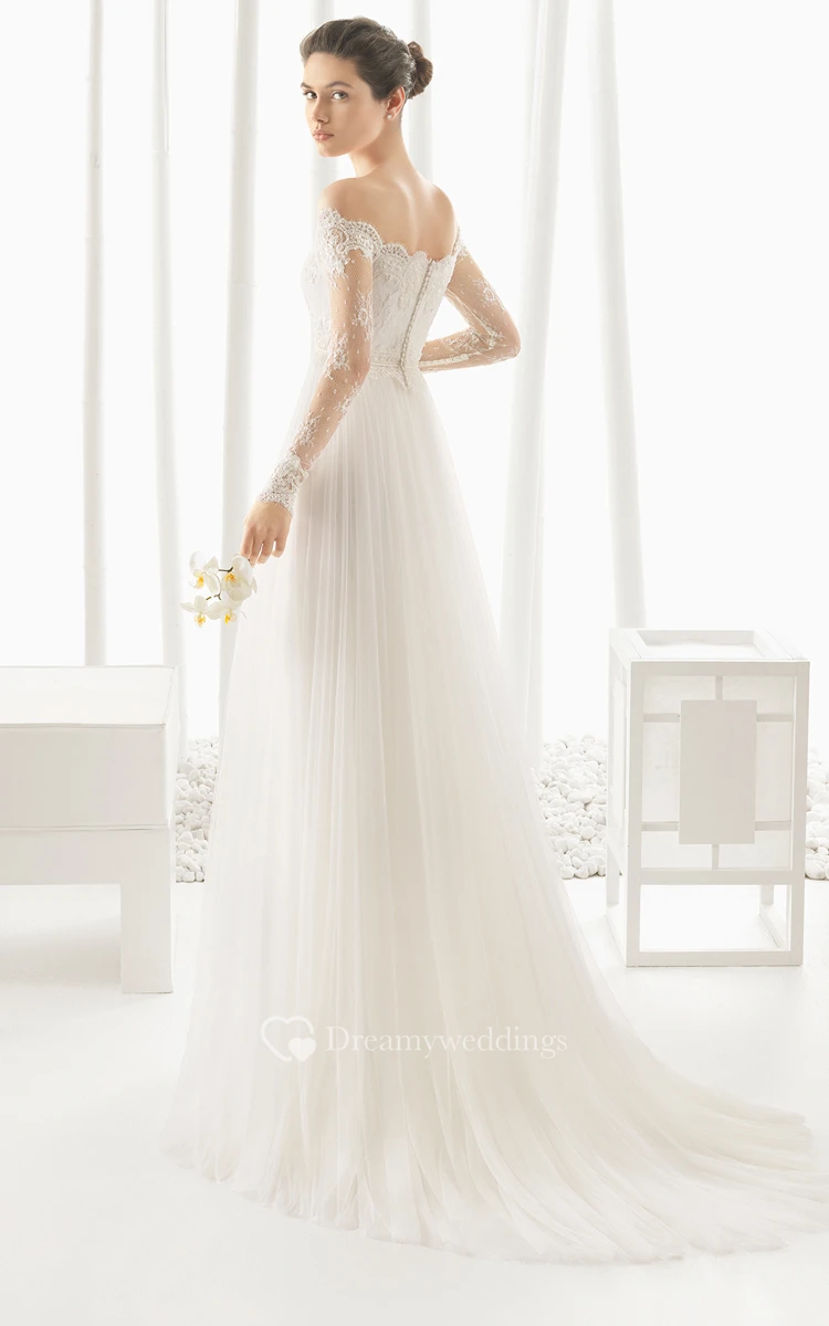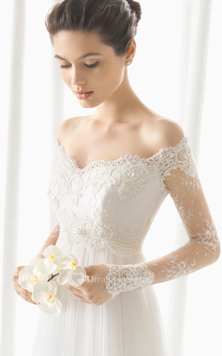 Off Designed Dress With Long Illusion Sleeves