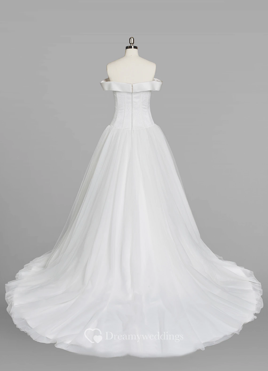 Off-Shoulder Chiffon Ball Gown With Corset Lace Bodice
