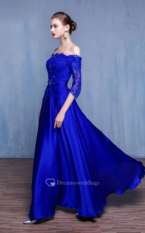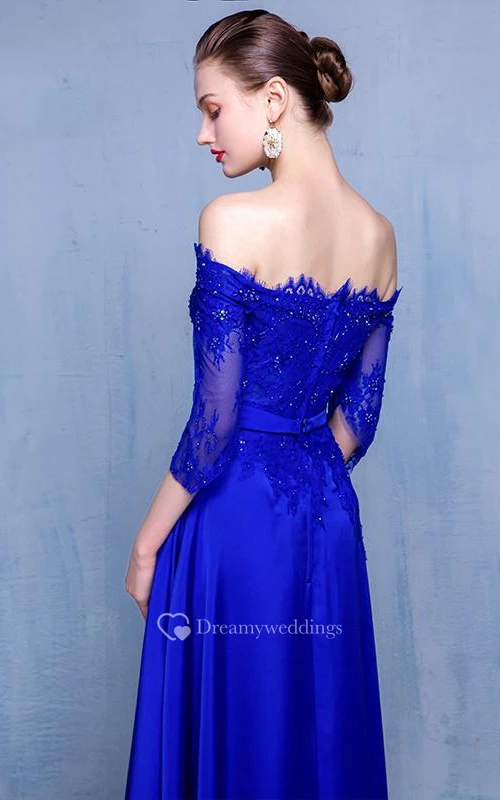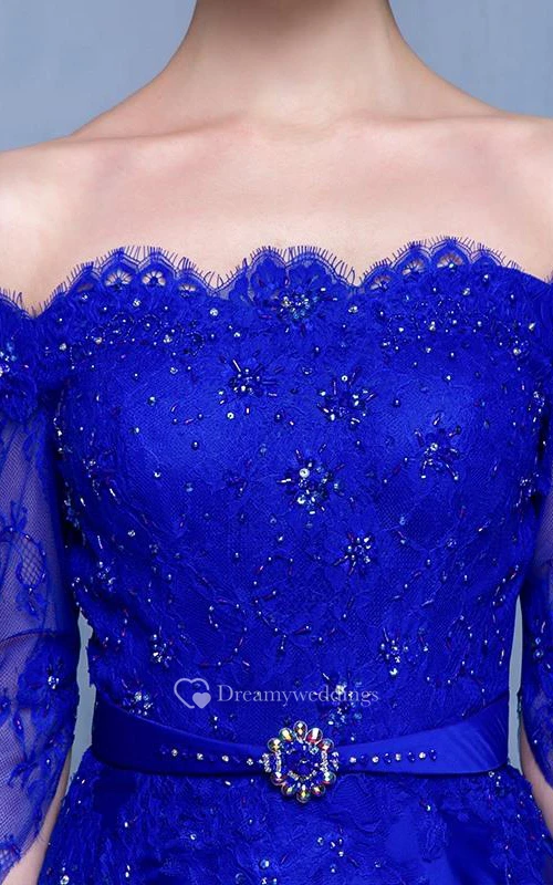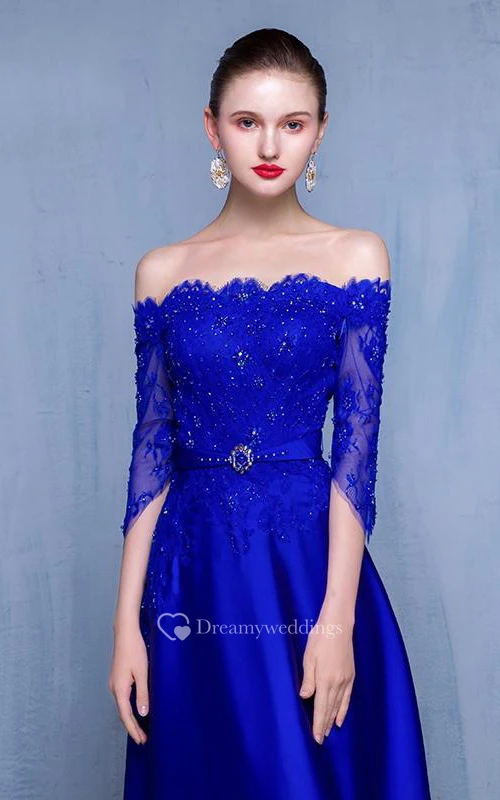 Off-the-Shoulder A-Line Beading Lace Evening Dress