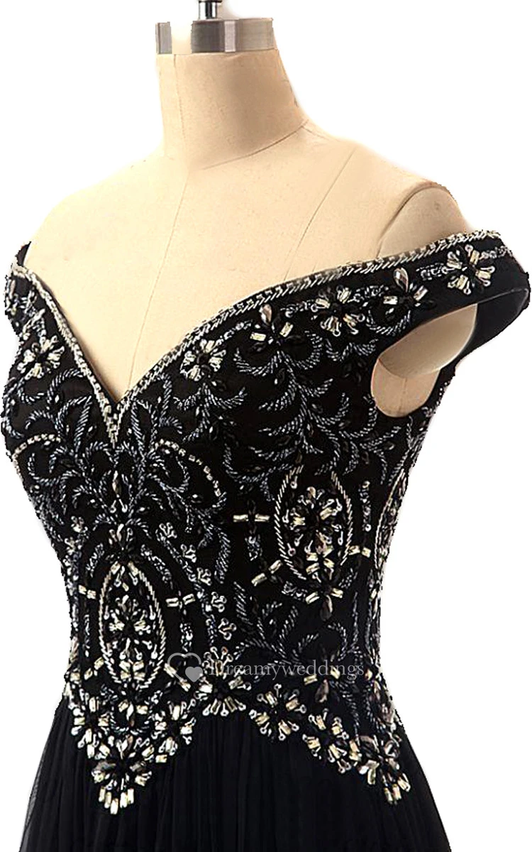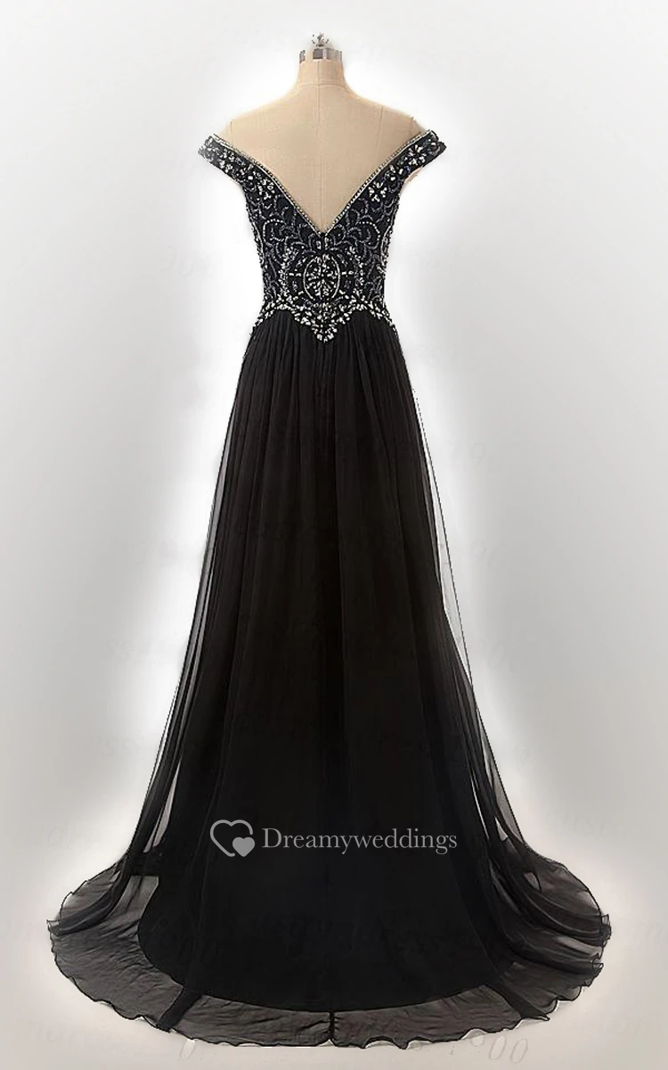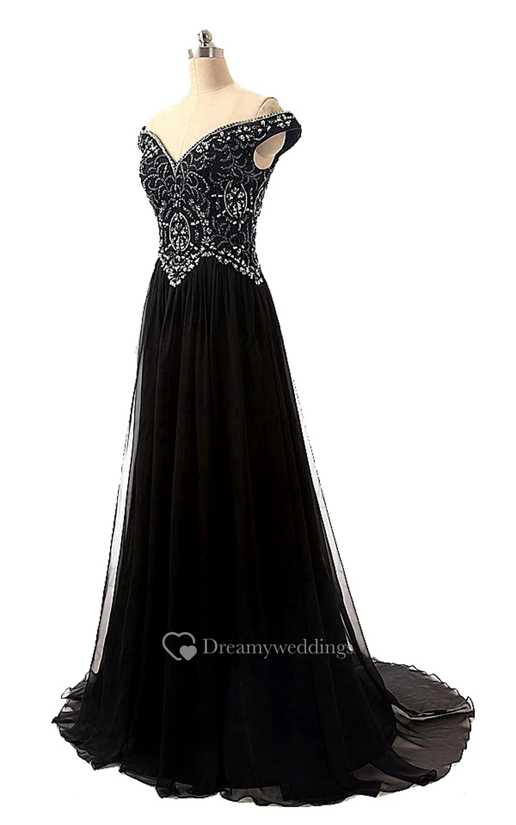 Off-the-shoulder A-line Chiffon Dress With Beaded Bodice