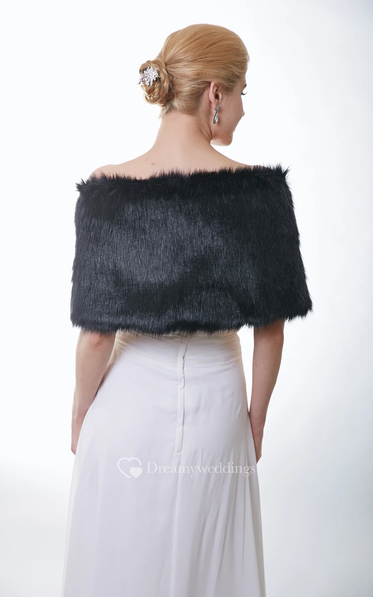 Off-The-Shoulder Black Faux Fur Wrap With Satin Bow