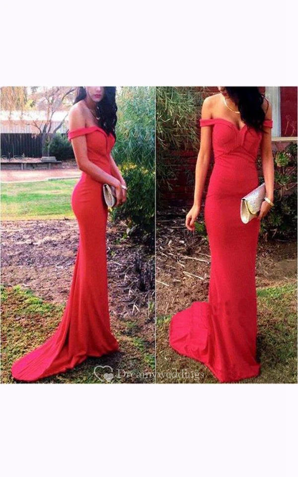 Off-the-shoulder Long Sheath Chiffon Dress with Open Back