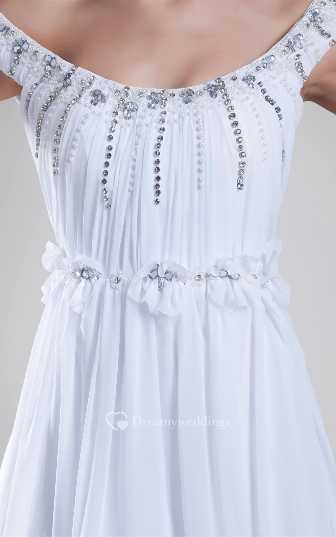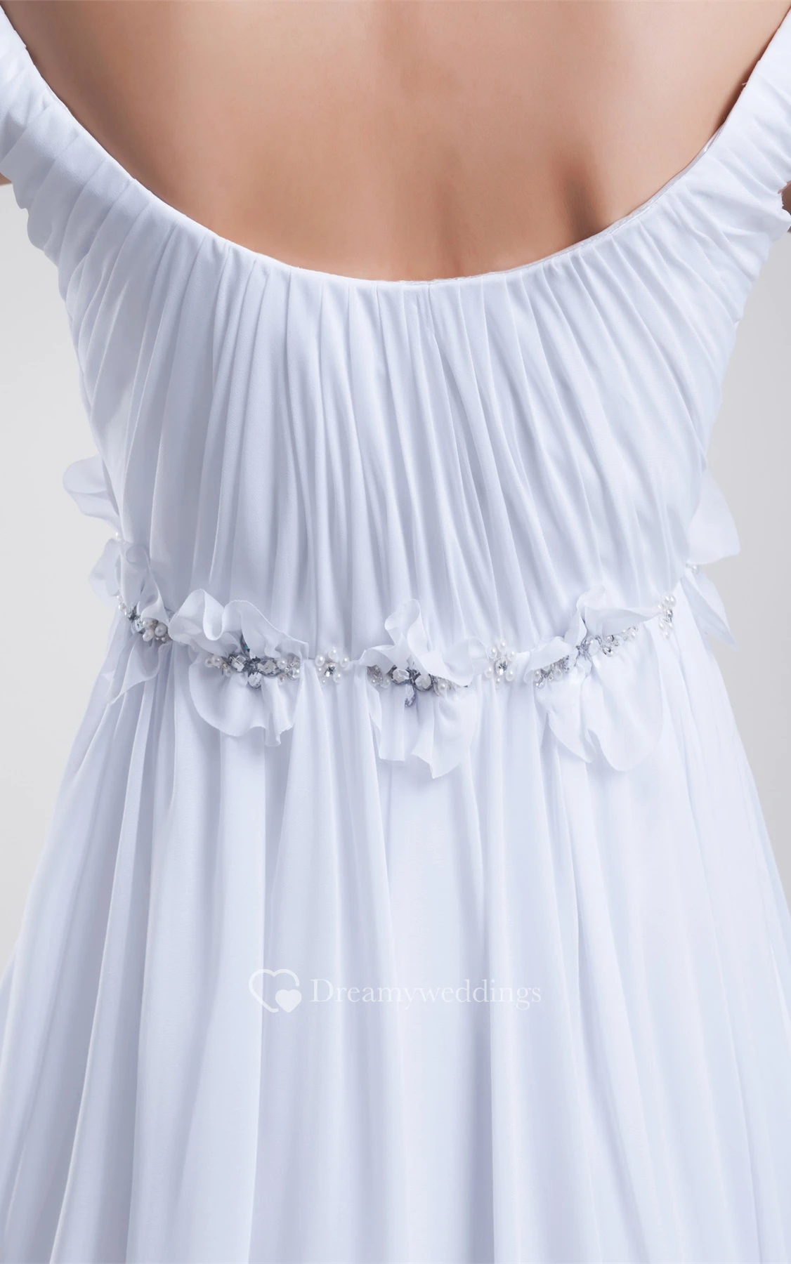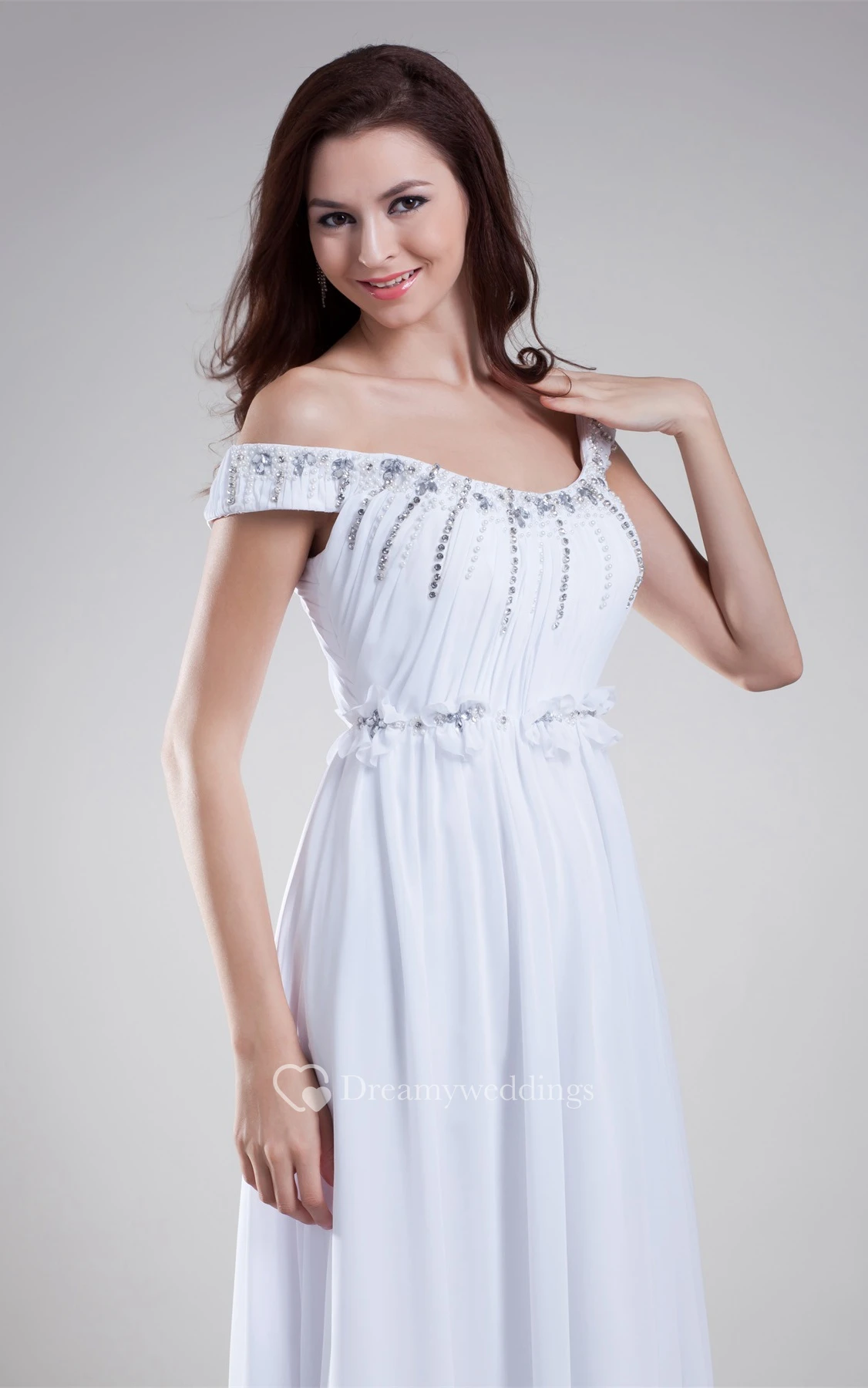Off-The-Shoulder Pleated Chiffon Beading and Dress With Flower