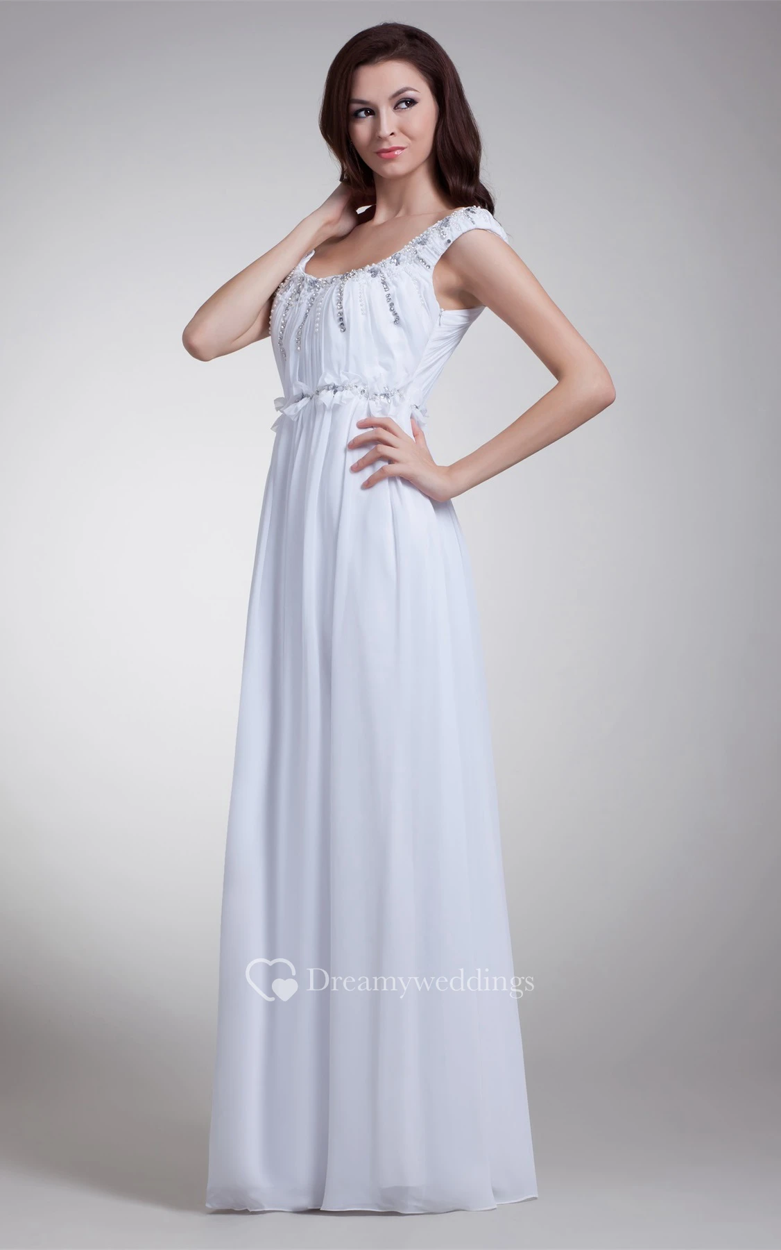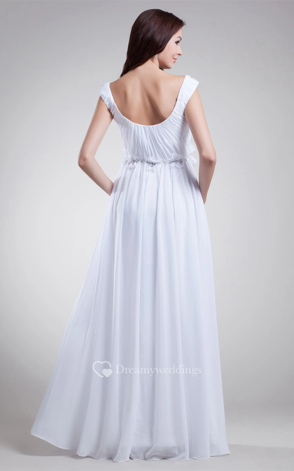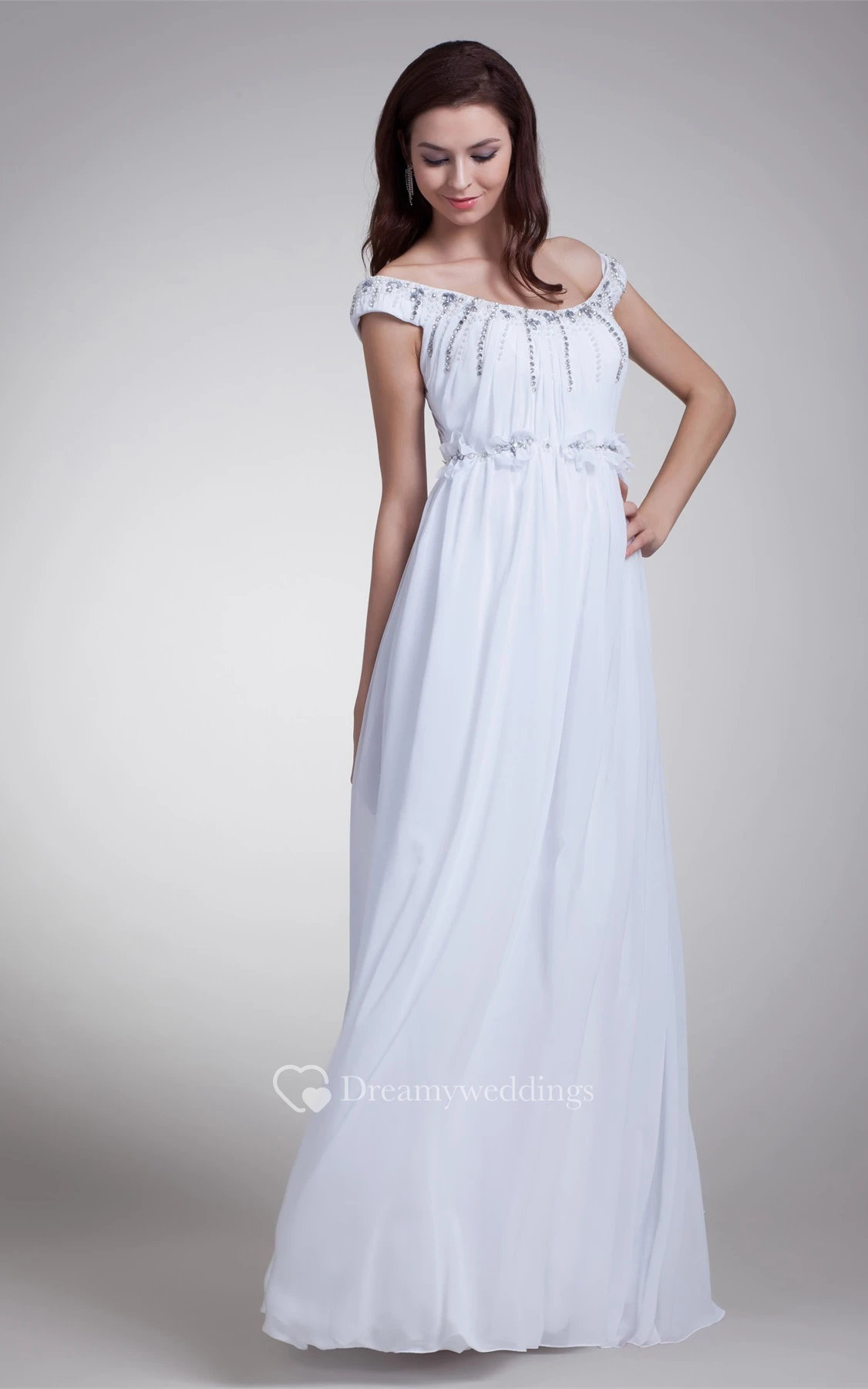 Off-The-Shoulder Pleated Chiffon Beading and Dress With Flower