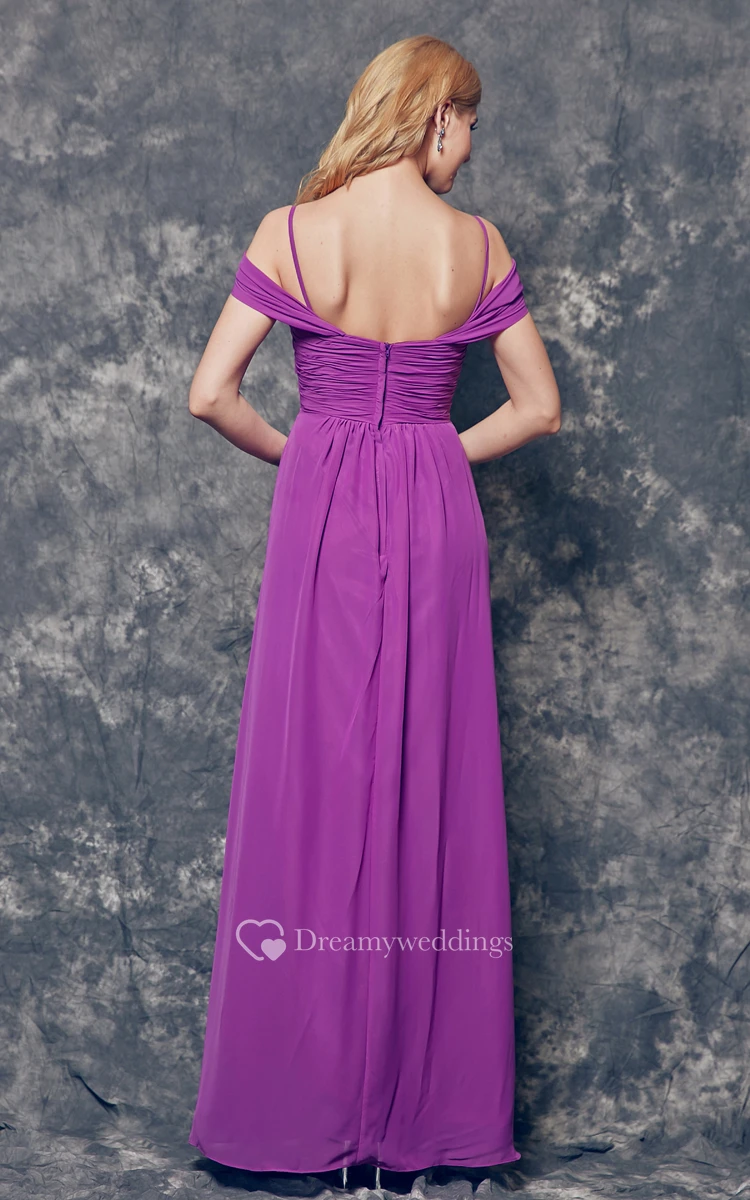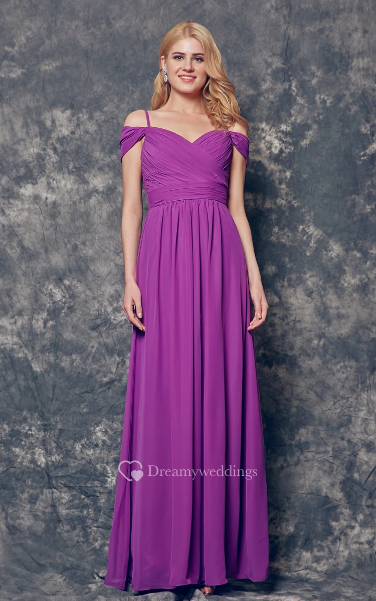 Off-the-shoulder Ruched Long A-line Chiffon Dress