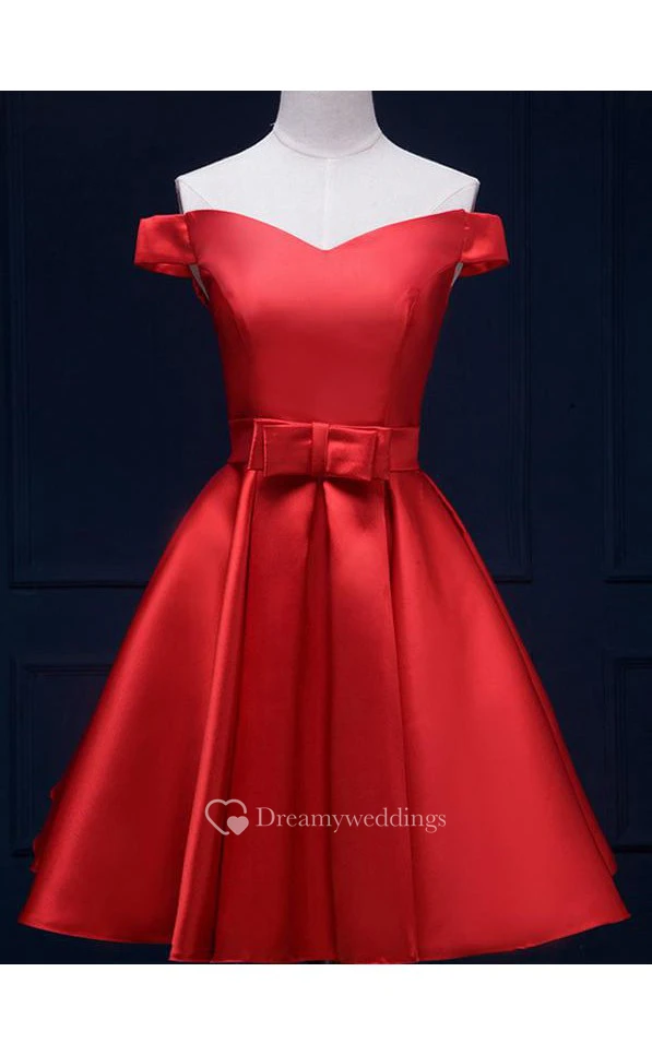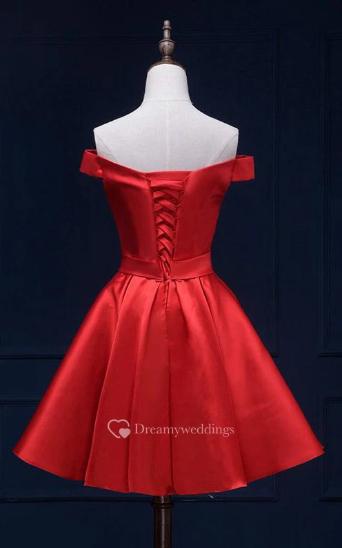 Off-the-shoulder Sweetheart A-line Short Satin Dress