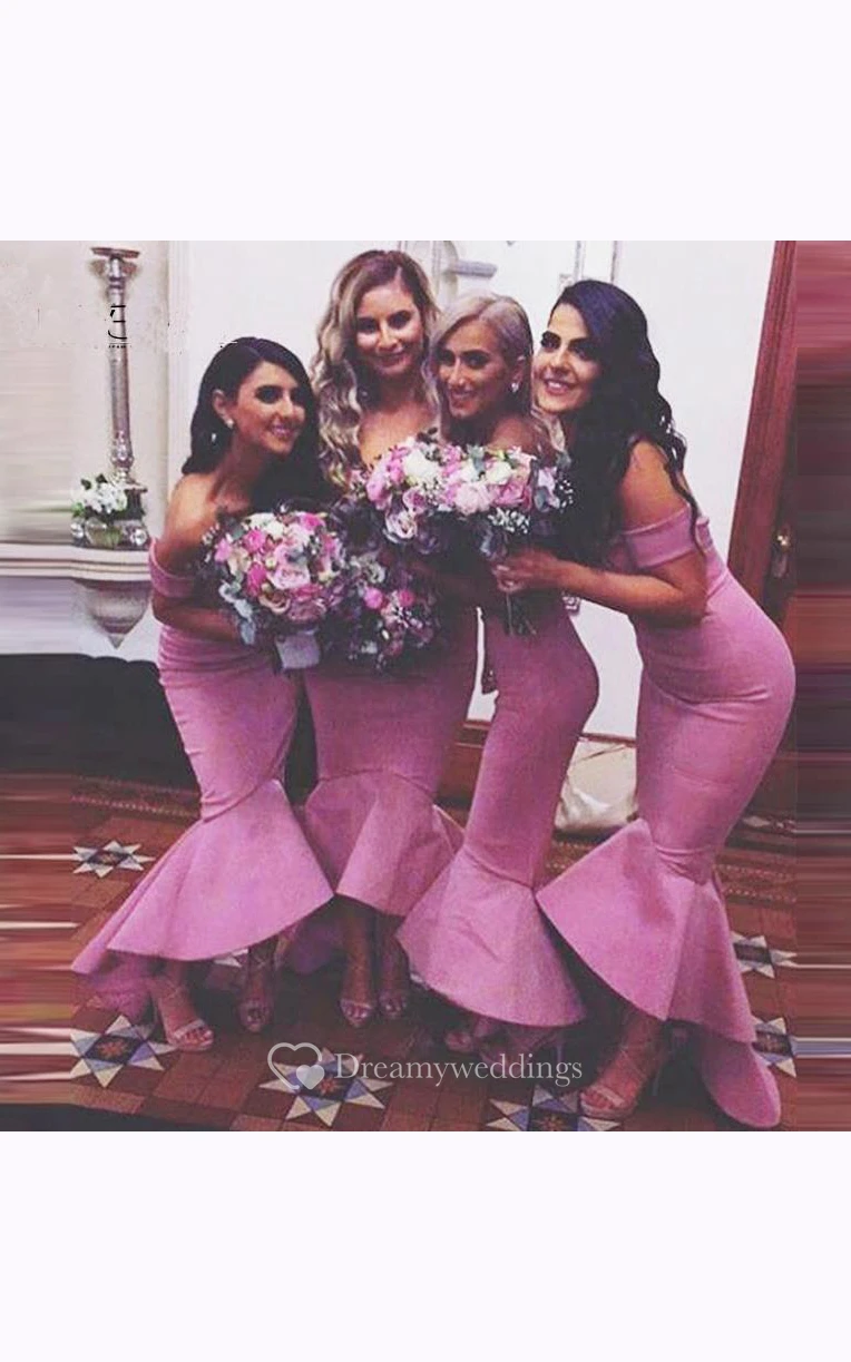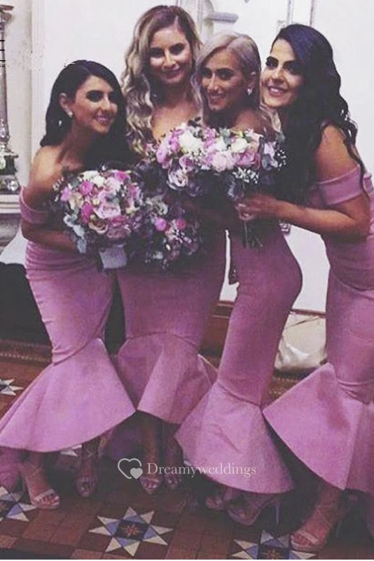 Off-the-shoulder Trumpet Satin Dress with Ruffles