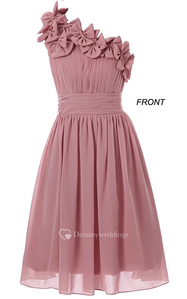 One-shoulder A-line Chiffon Dress With 3D Flowers