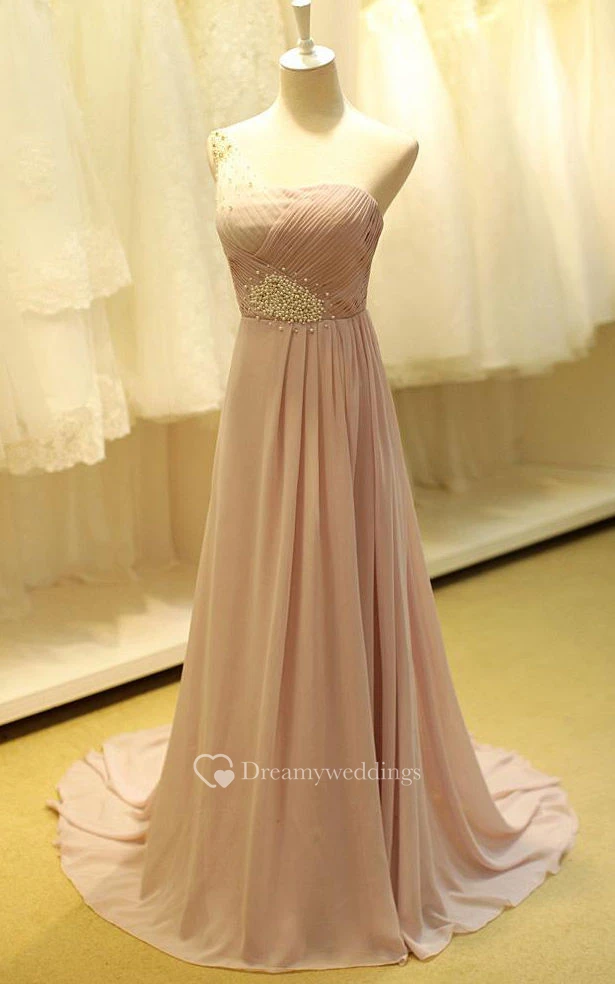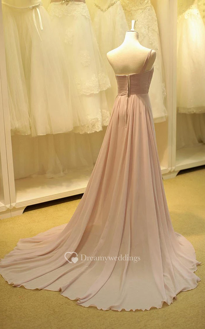 One-shoulder A-line Chiffon Dress with Beadings and Pleats