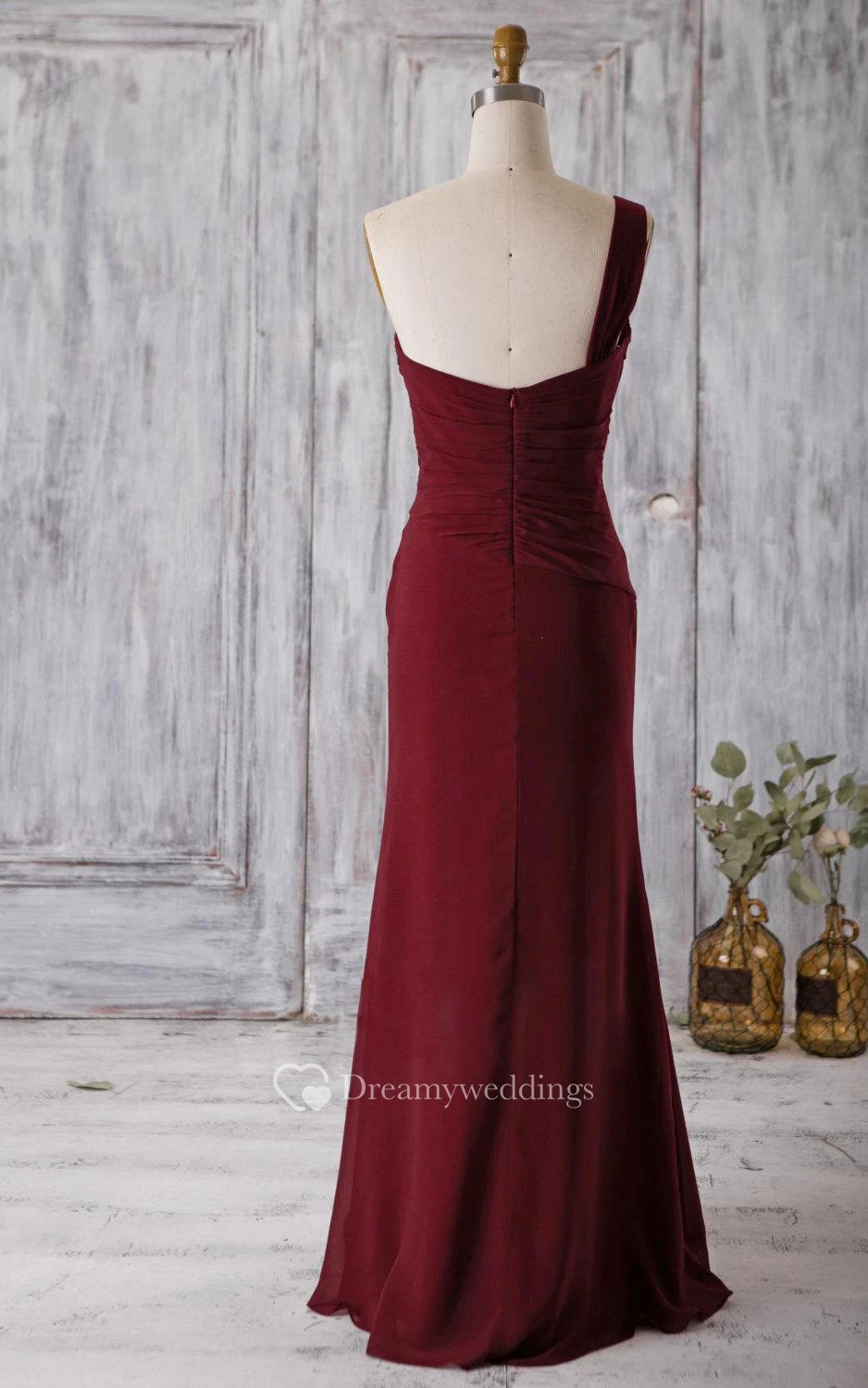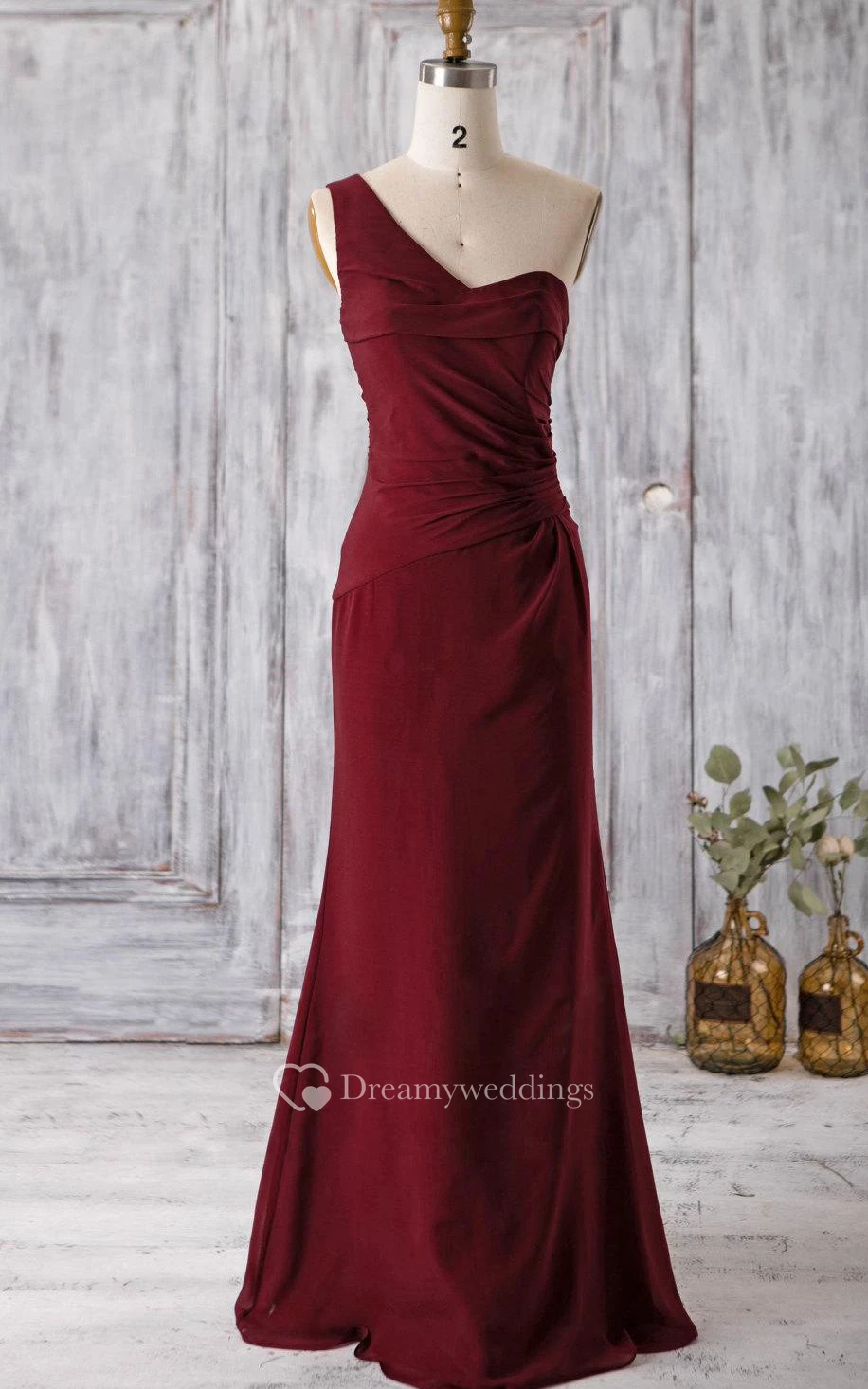 One Shoulder A-line Chiffon Floor Length Dress With Ruching