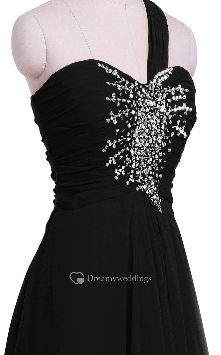 One-shoulder A-line Chiffon Gown With Beadings