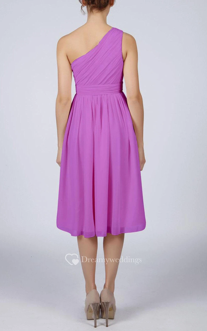 One Shoulder A-line Chiffon Knee Length Dress With Bandage Lilac