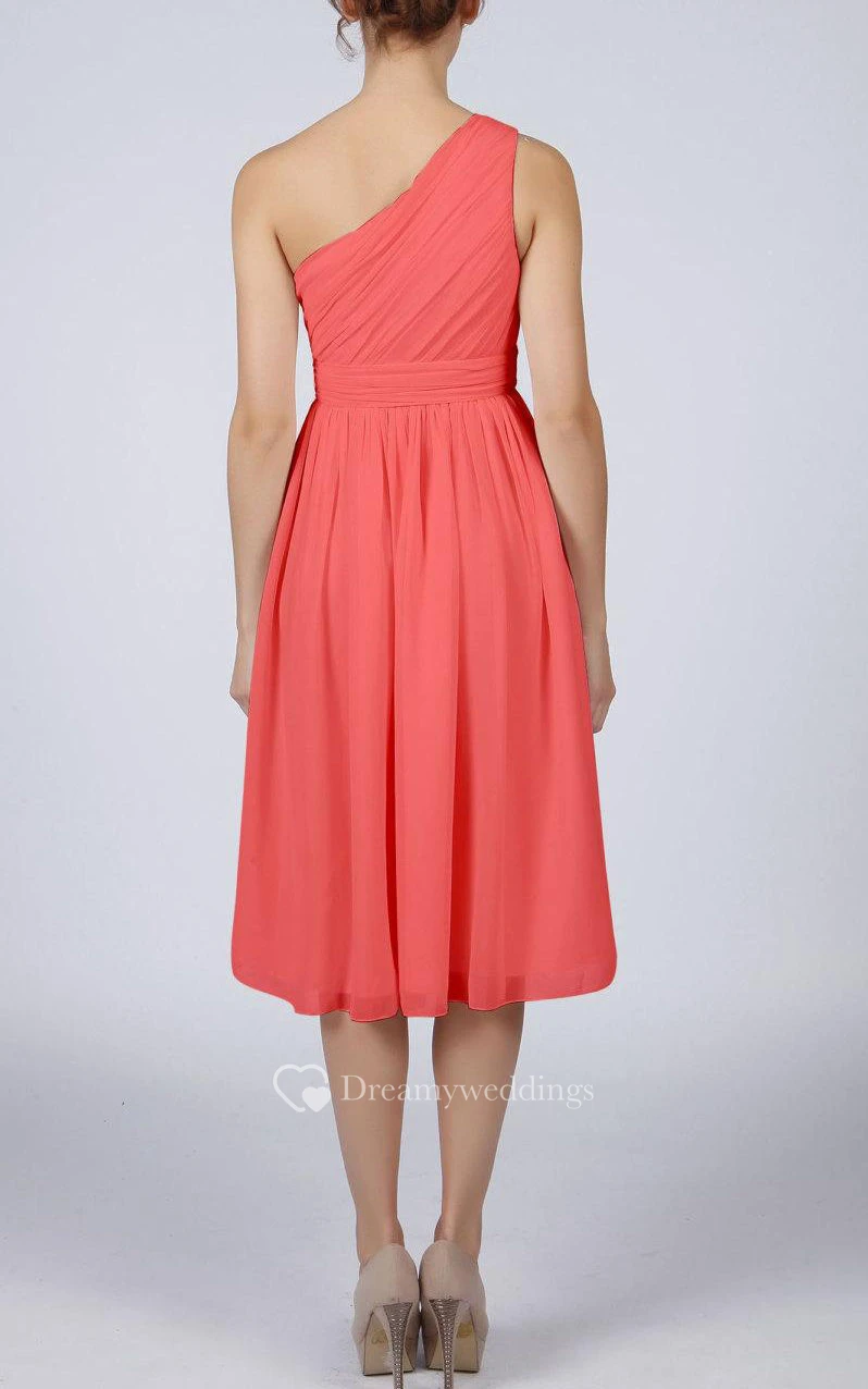 One Shoulder A-line Chiffon Knee Length Dress With Bandage Orange