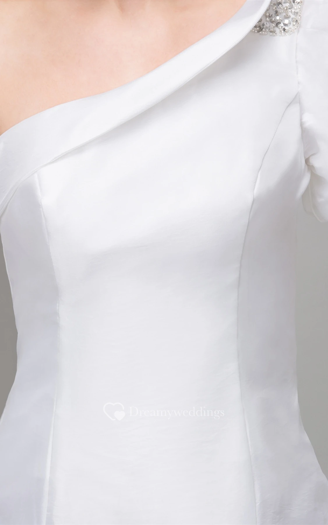 One-Shoulder A-Line Satin Gown With Beaded Epaulet