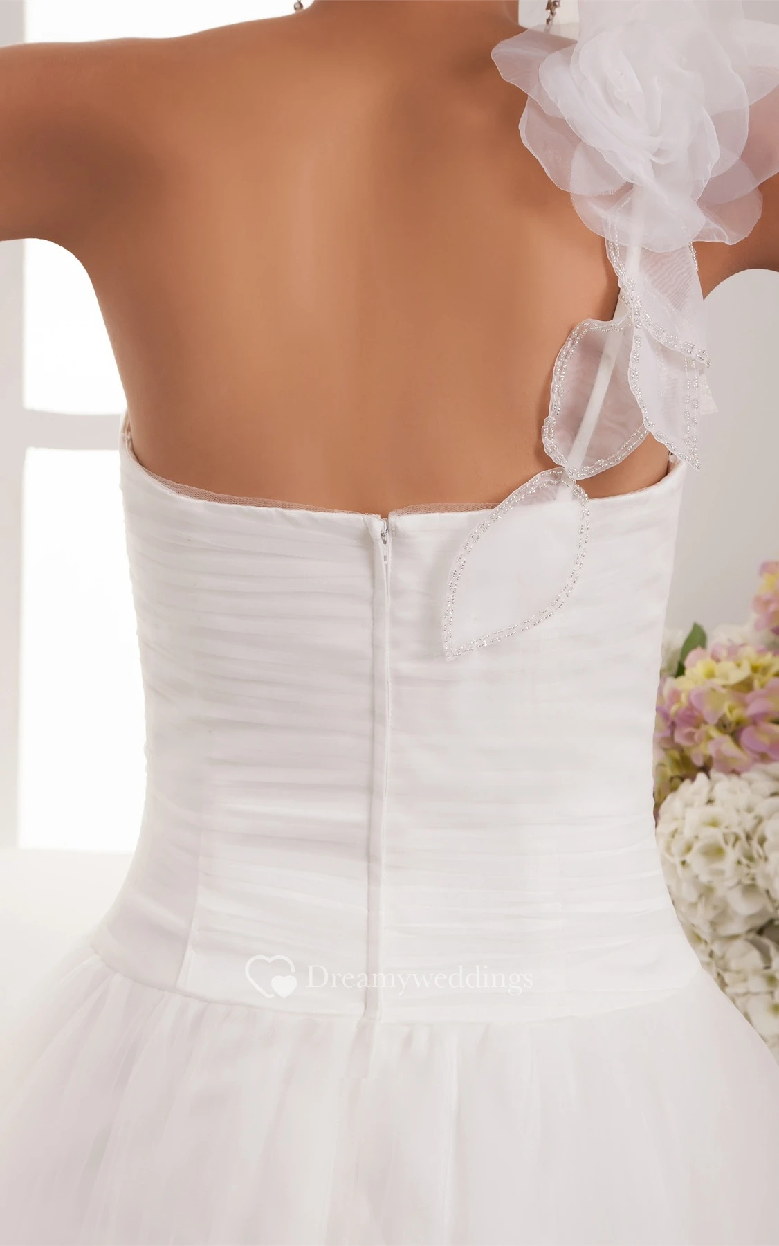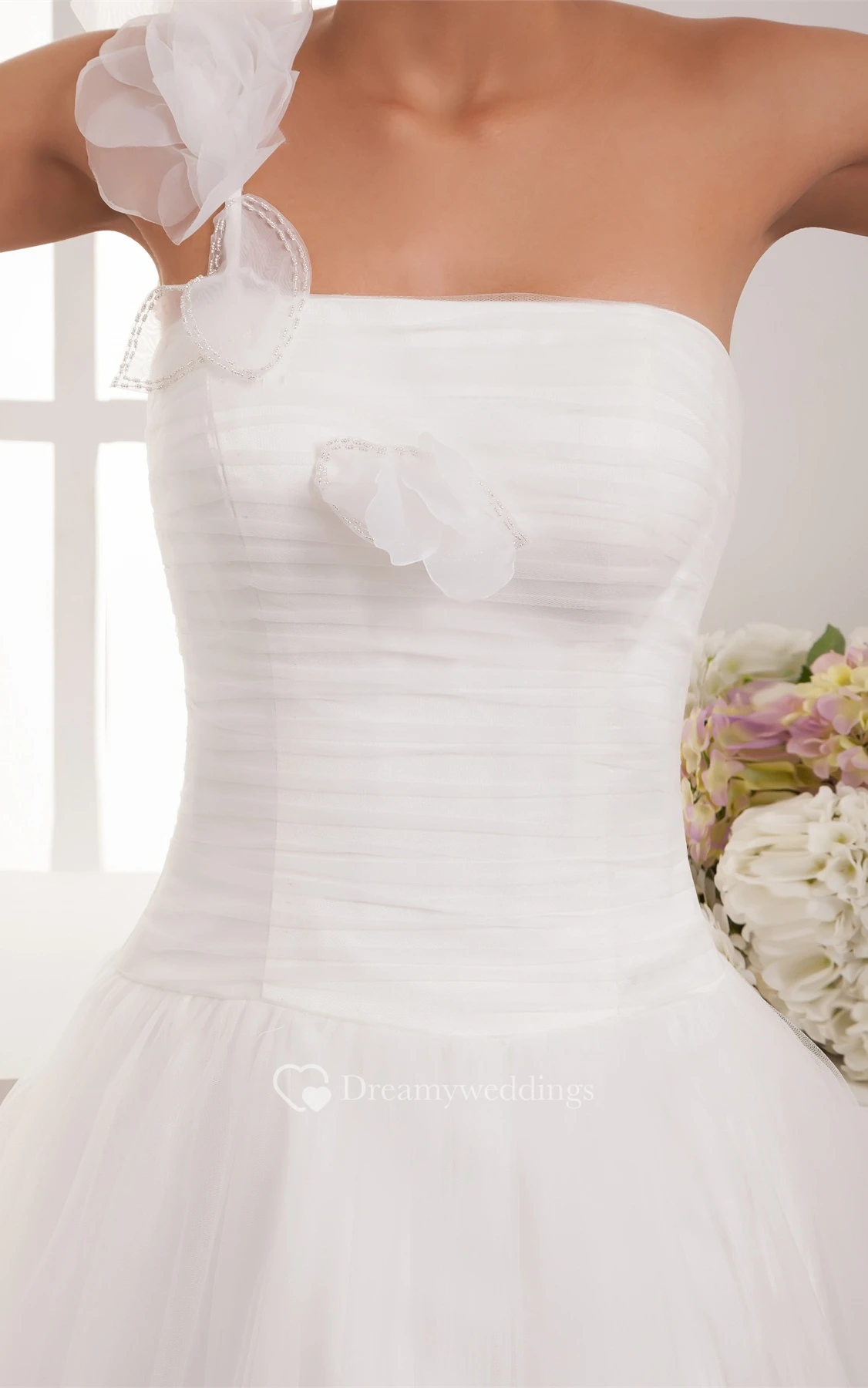 One-Shoulder A-Line Tulle Single Strap and Dress With Ruching