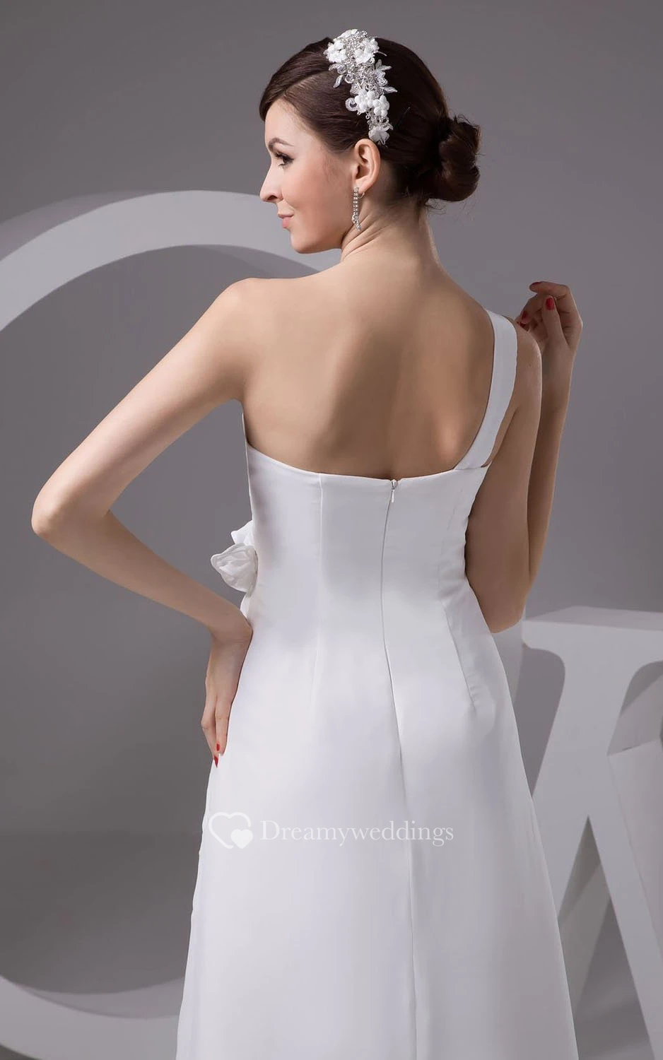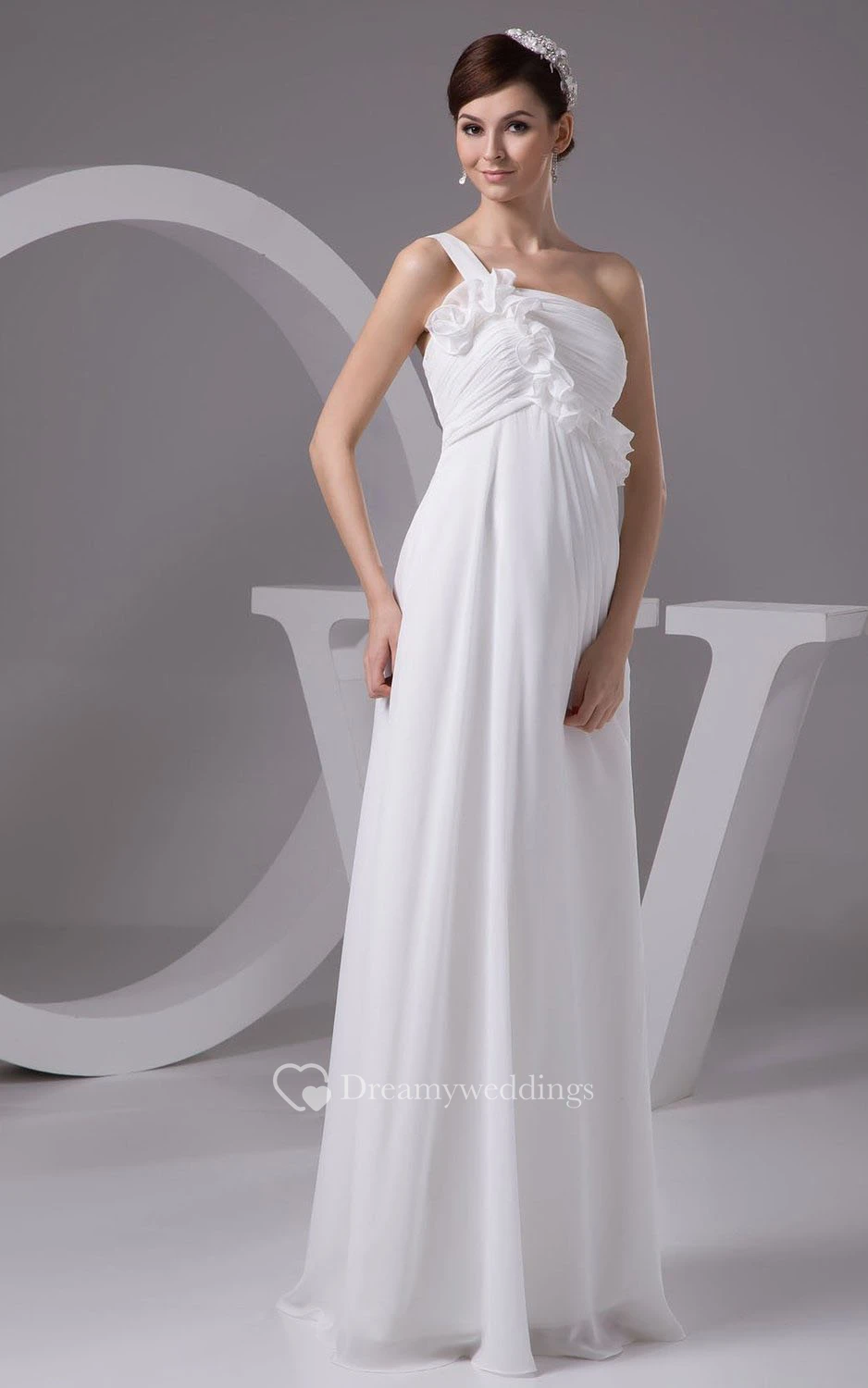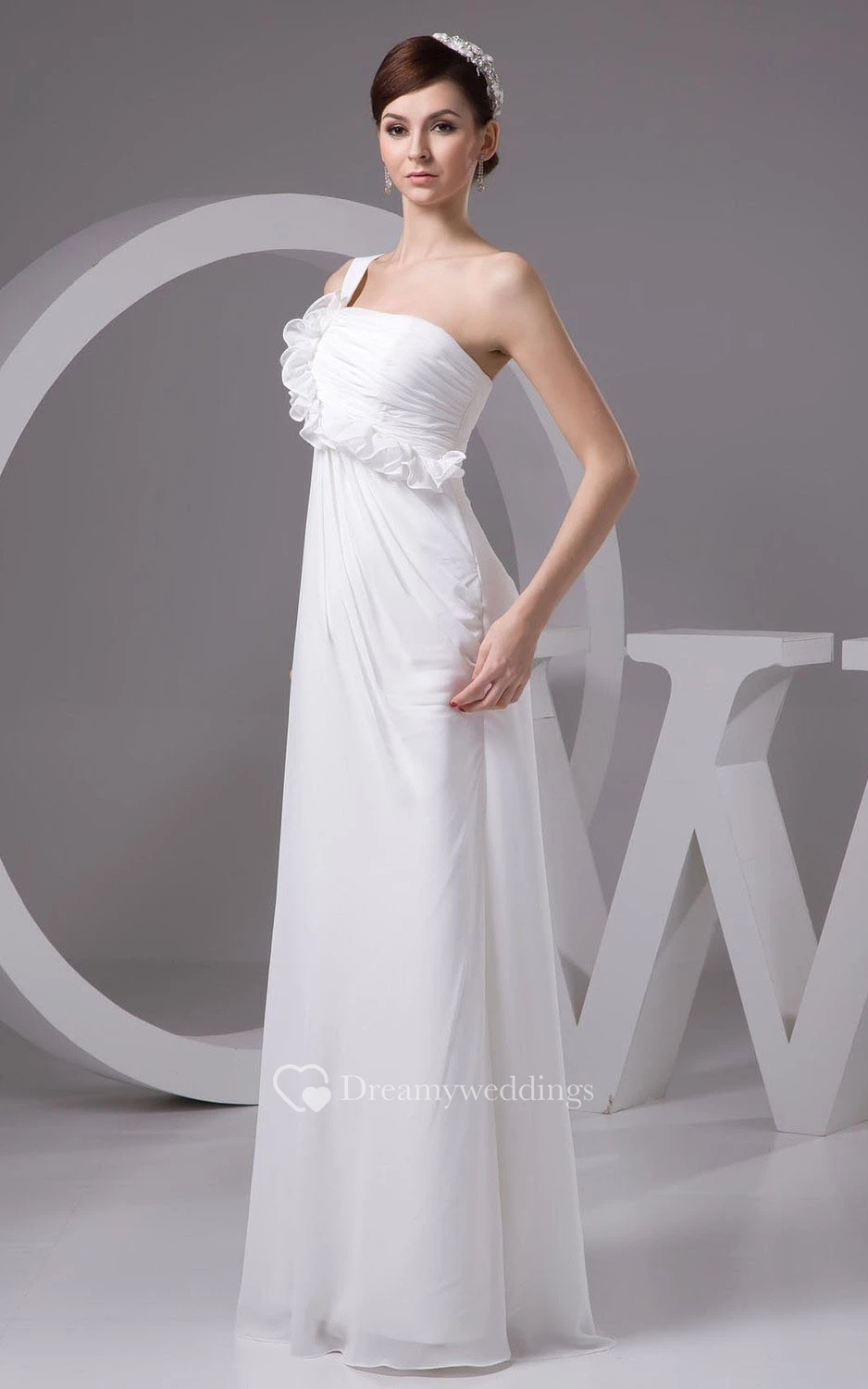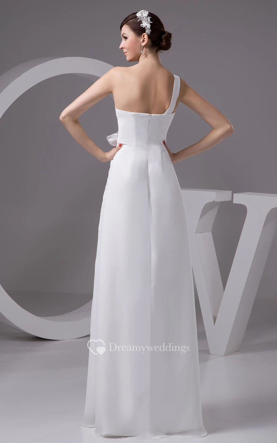 One-shoulder Appliqued Bodice Long Chiffon Dress