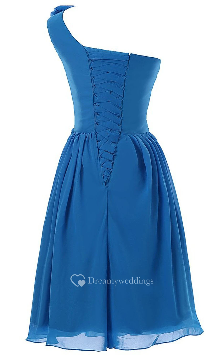 One-shoulder Appliqued Strap Knee-length Pleated Chiffon Dress