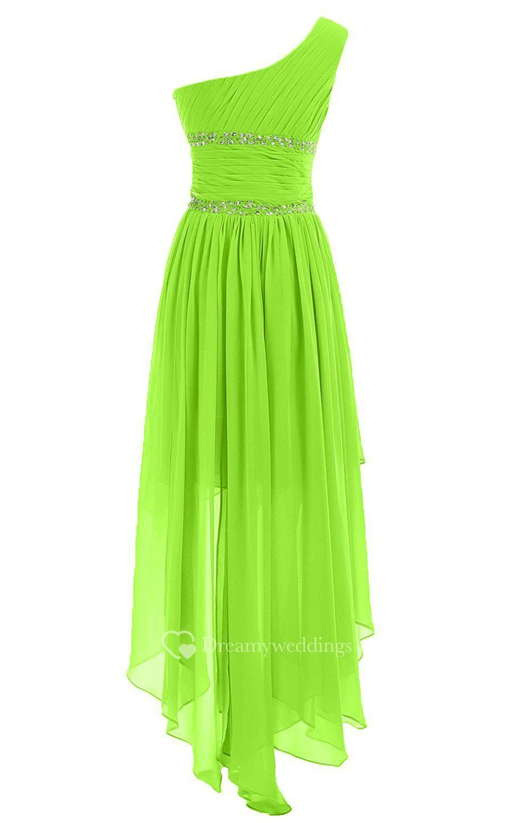 One-shoulder Asymmetrical Chiffon Dress With Beadings